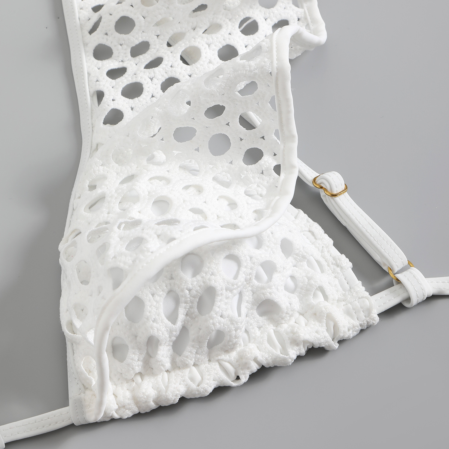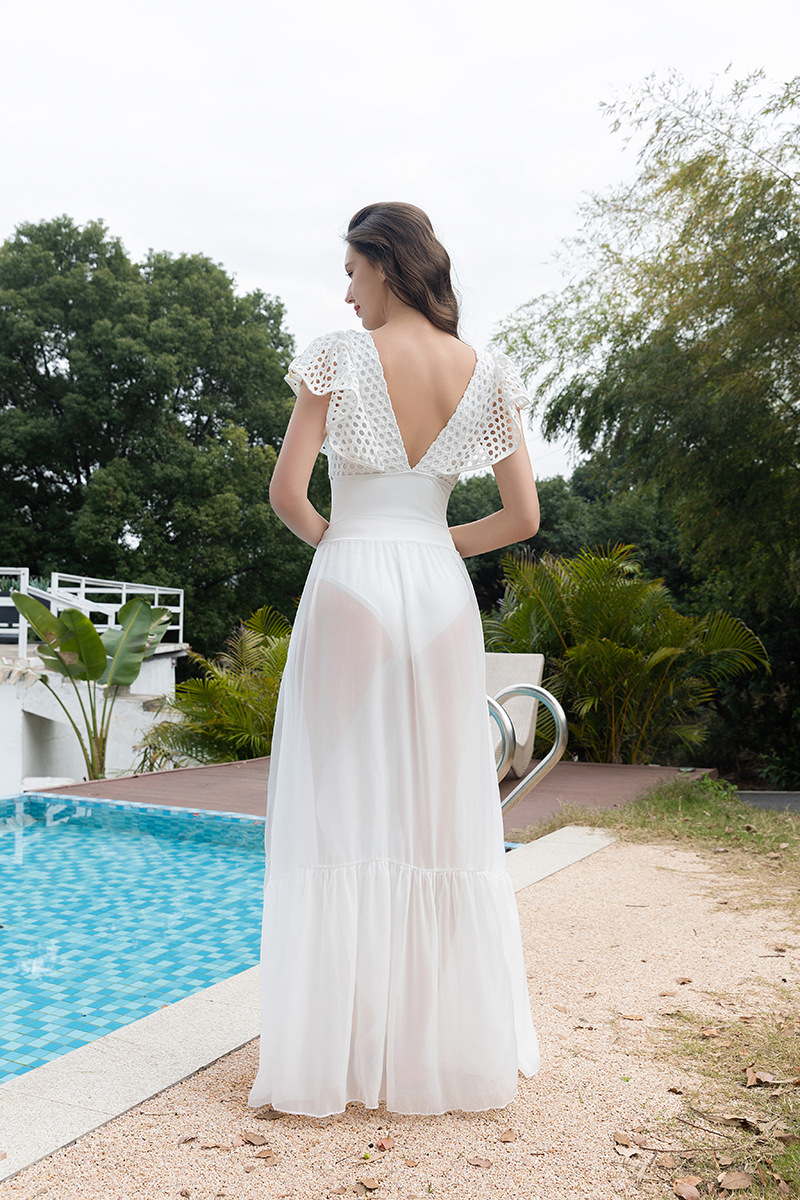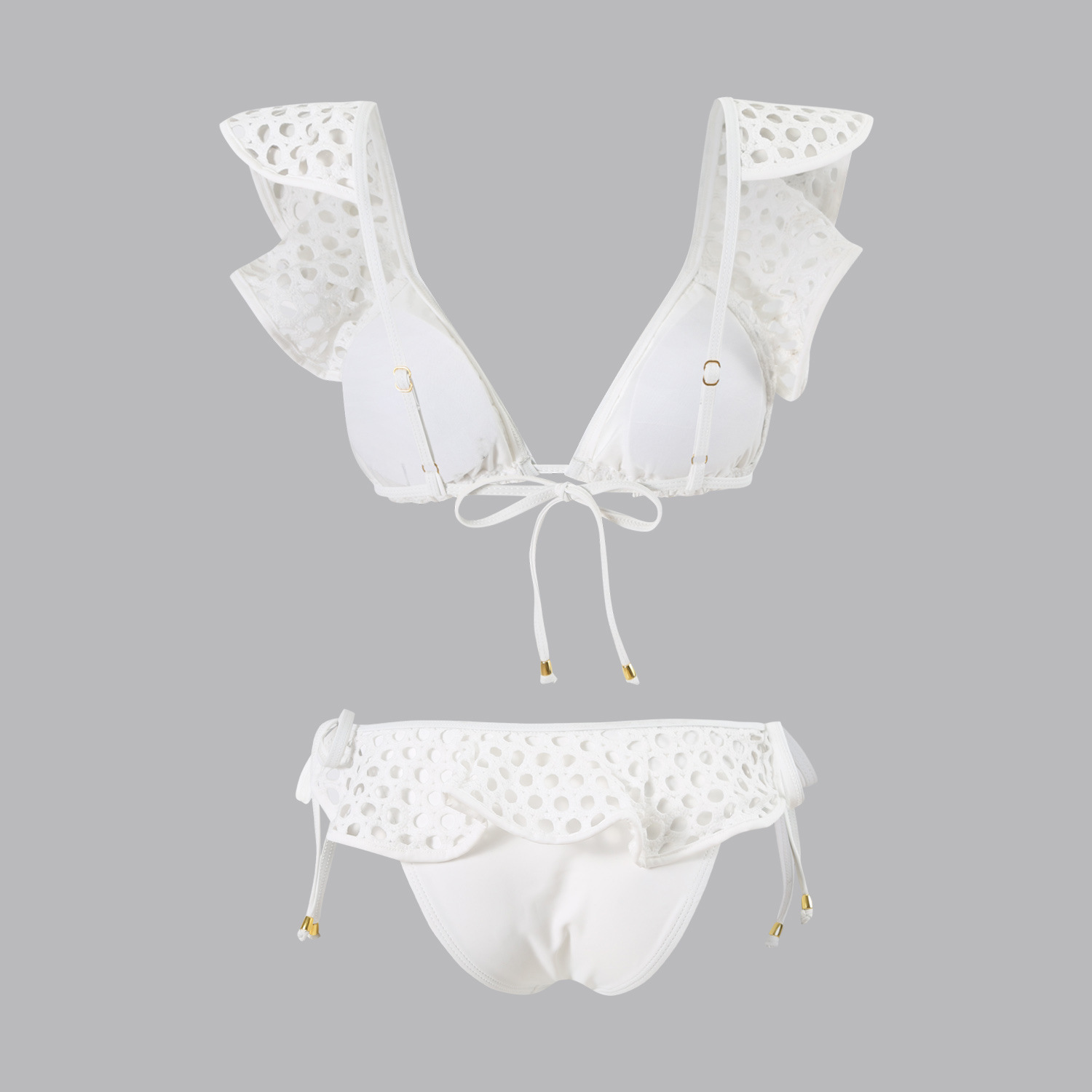유럽과 미국의 아마존 AliExpress 화이트 메쉬 러플 인 하이 엔드 수영복 여성 샤넬 비키니