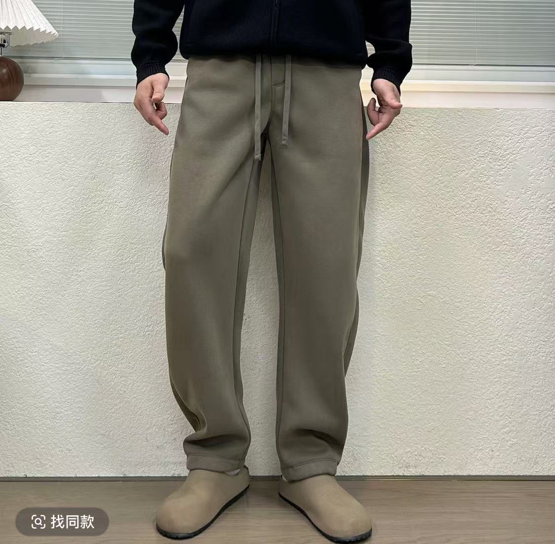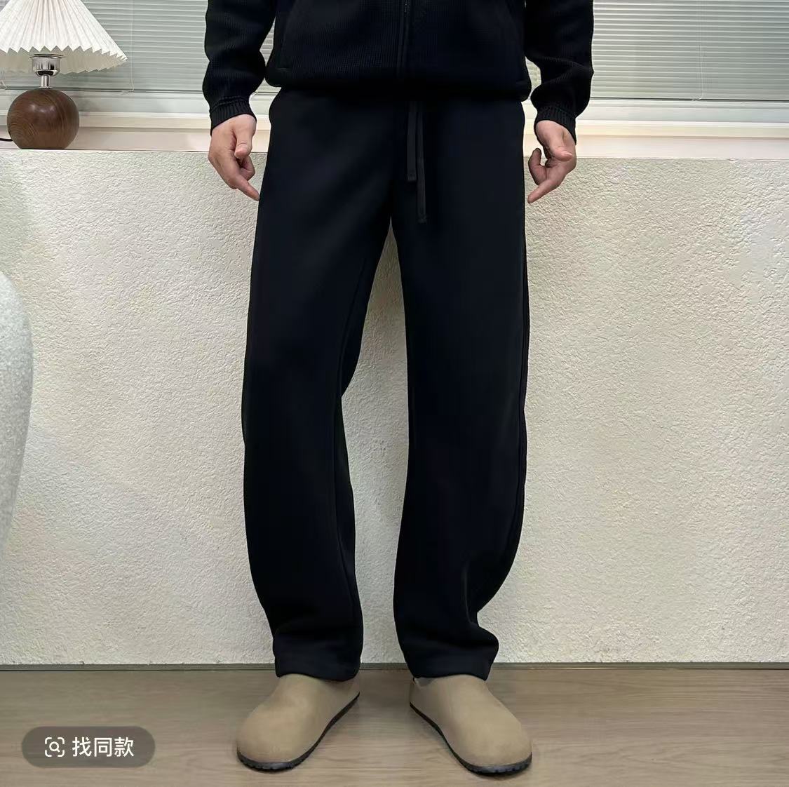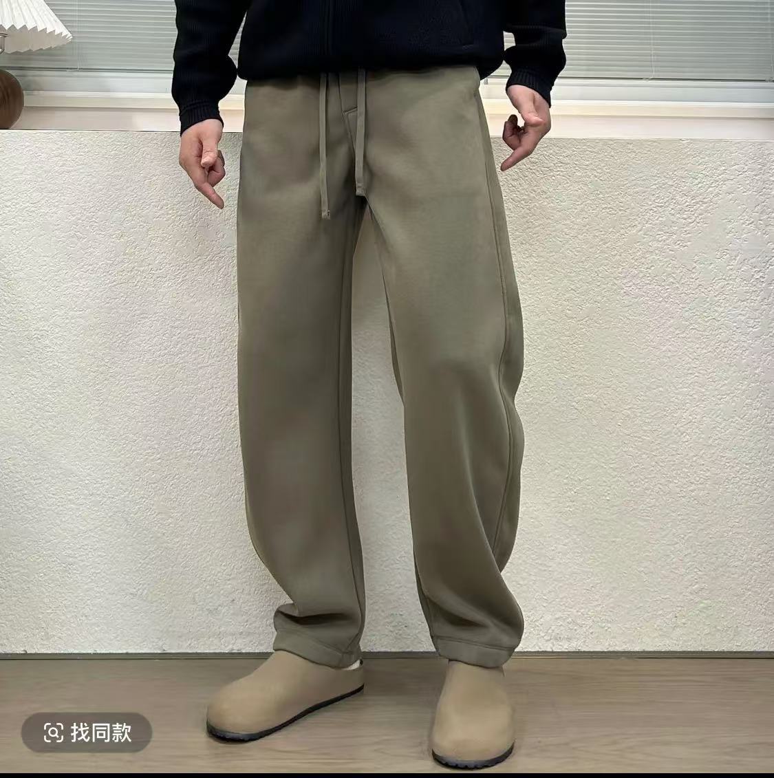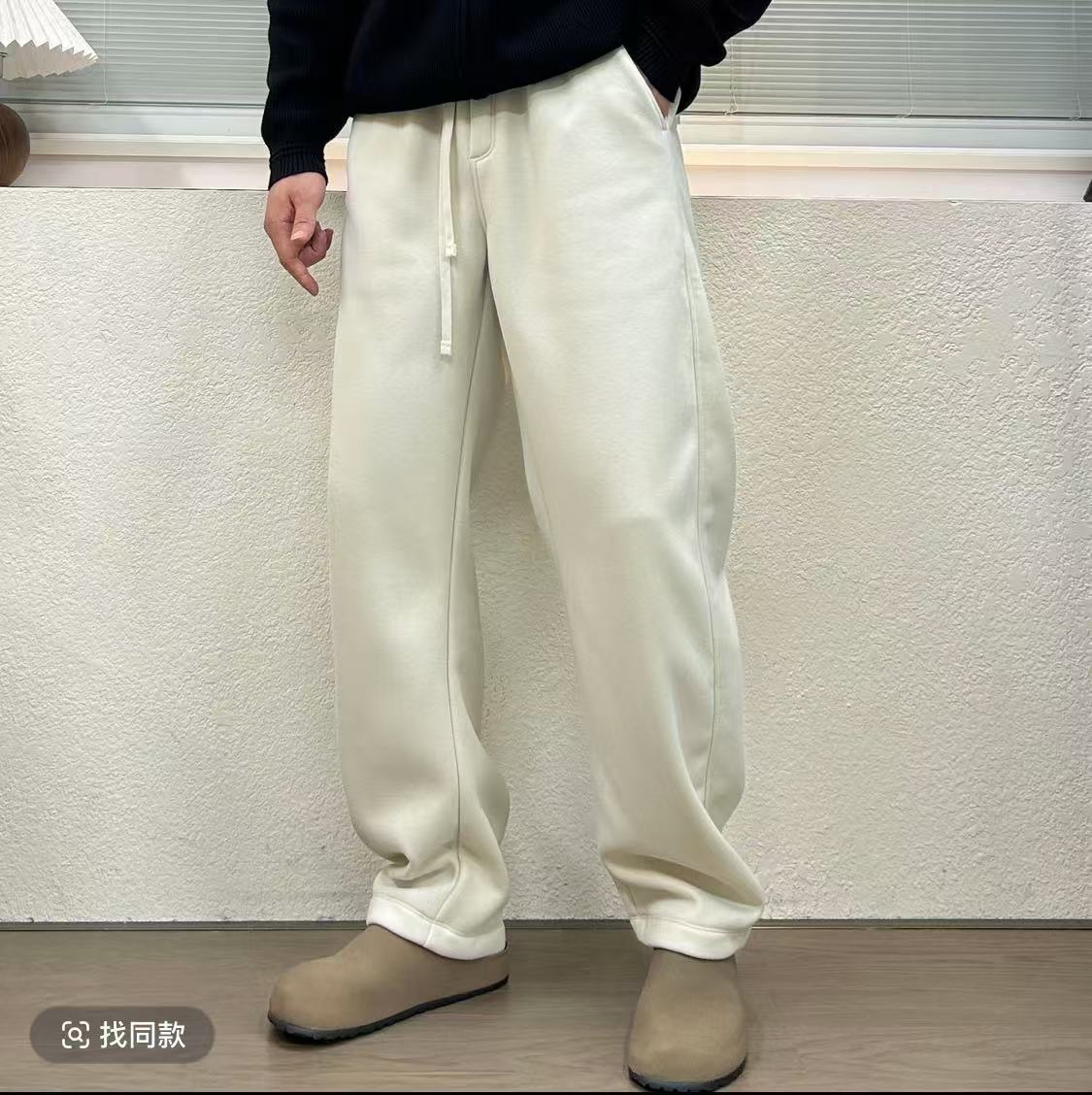 간단하고 트렌디 한 남성용 단색 캐주얼 바지 가을과 겨울 기모 남성용 스트레이트 하이 라이즈 스트리트 얇은 테더 바지스토어 가기