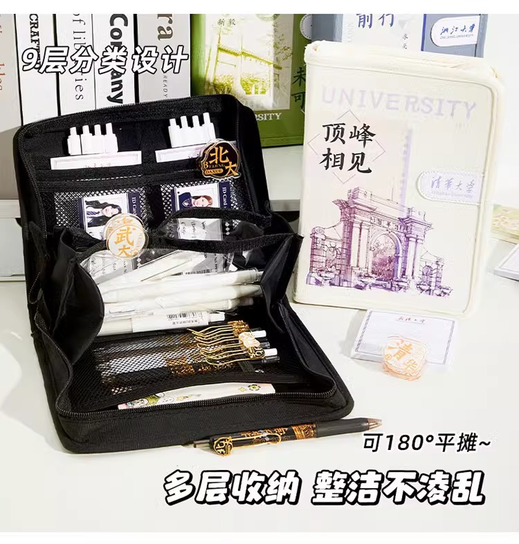 대학 연필 가방 북경 대학 책 연필 가방 파티션 대용량 연필 가방 중학교 여자 간단한 연필 케이스