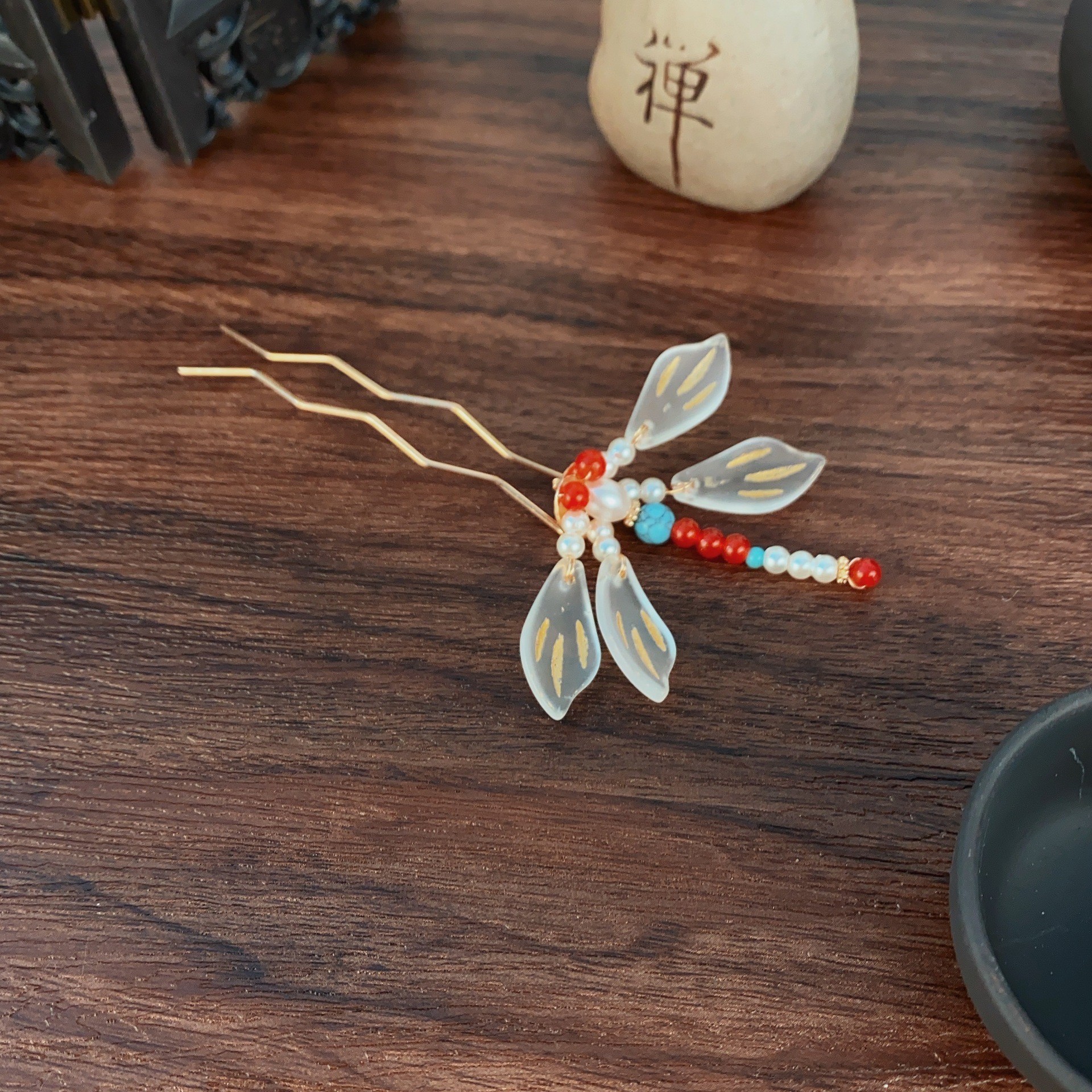 새로운 중국 스타일 고대 스타일 모방 청록색 잠자리 헤어핀 국가 스타일 창조적 인 U 자형 헤어핀 빈티지 한후 말 얼굴 원피스 액세서리스토어 가기
