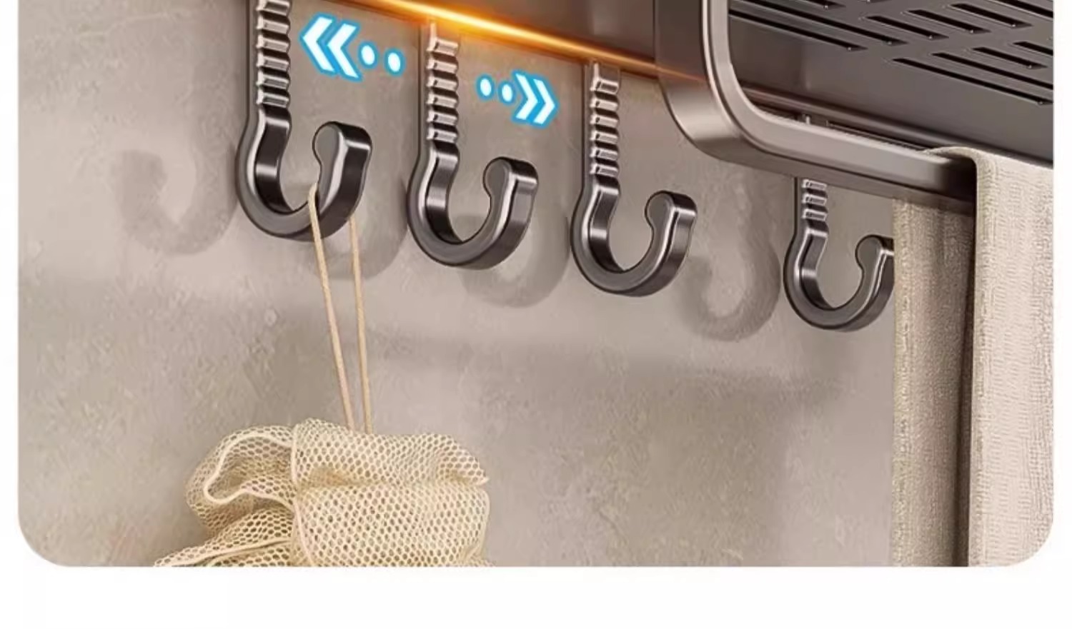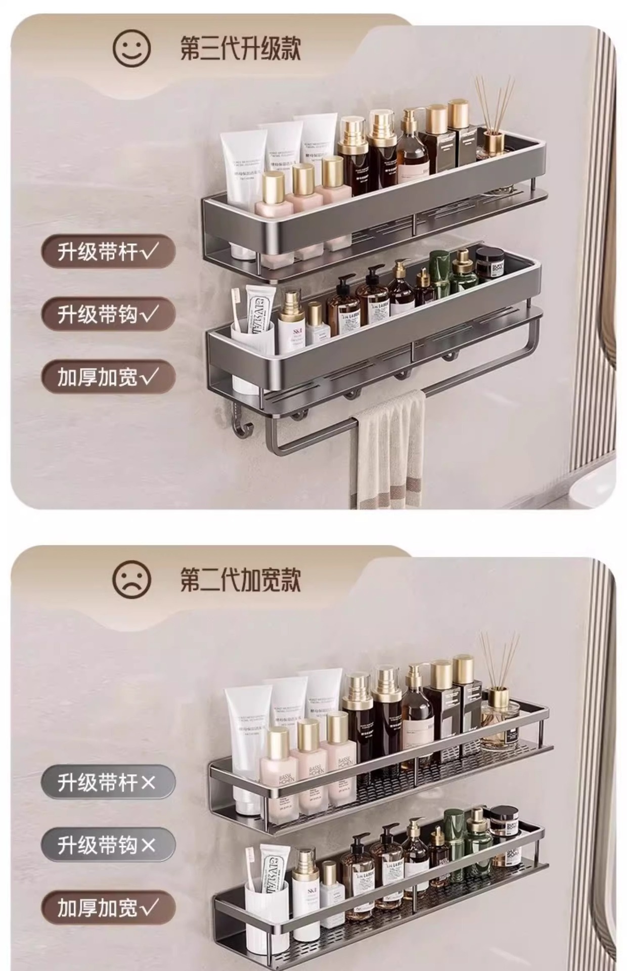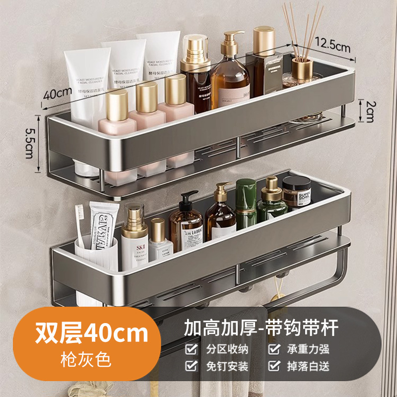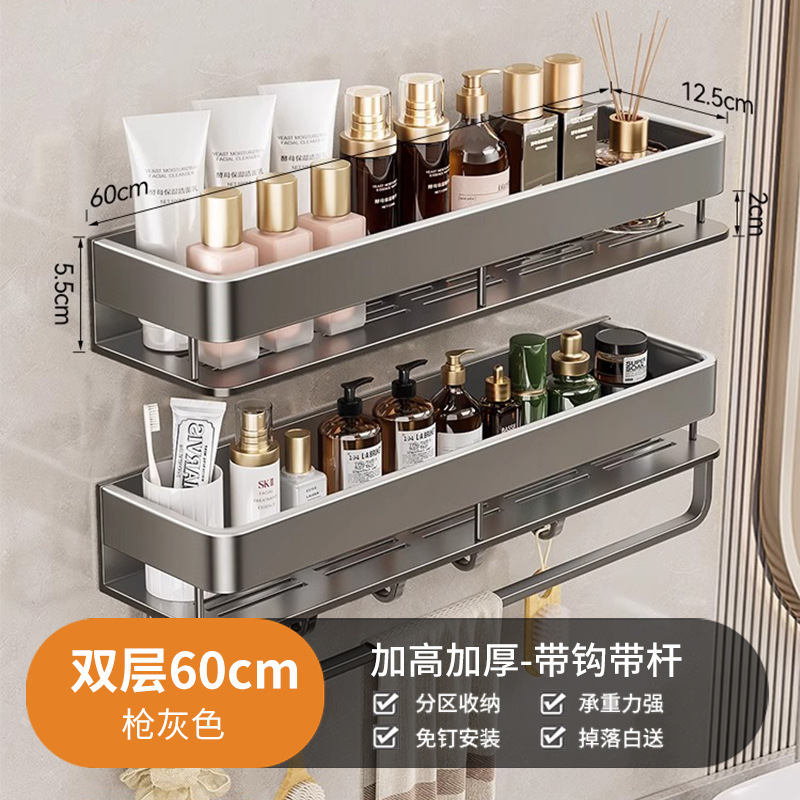 • 스페이스 알루미늄 60cm 건그레이 - 후크가 있는 더블 레이어 [탈착 가능]