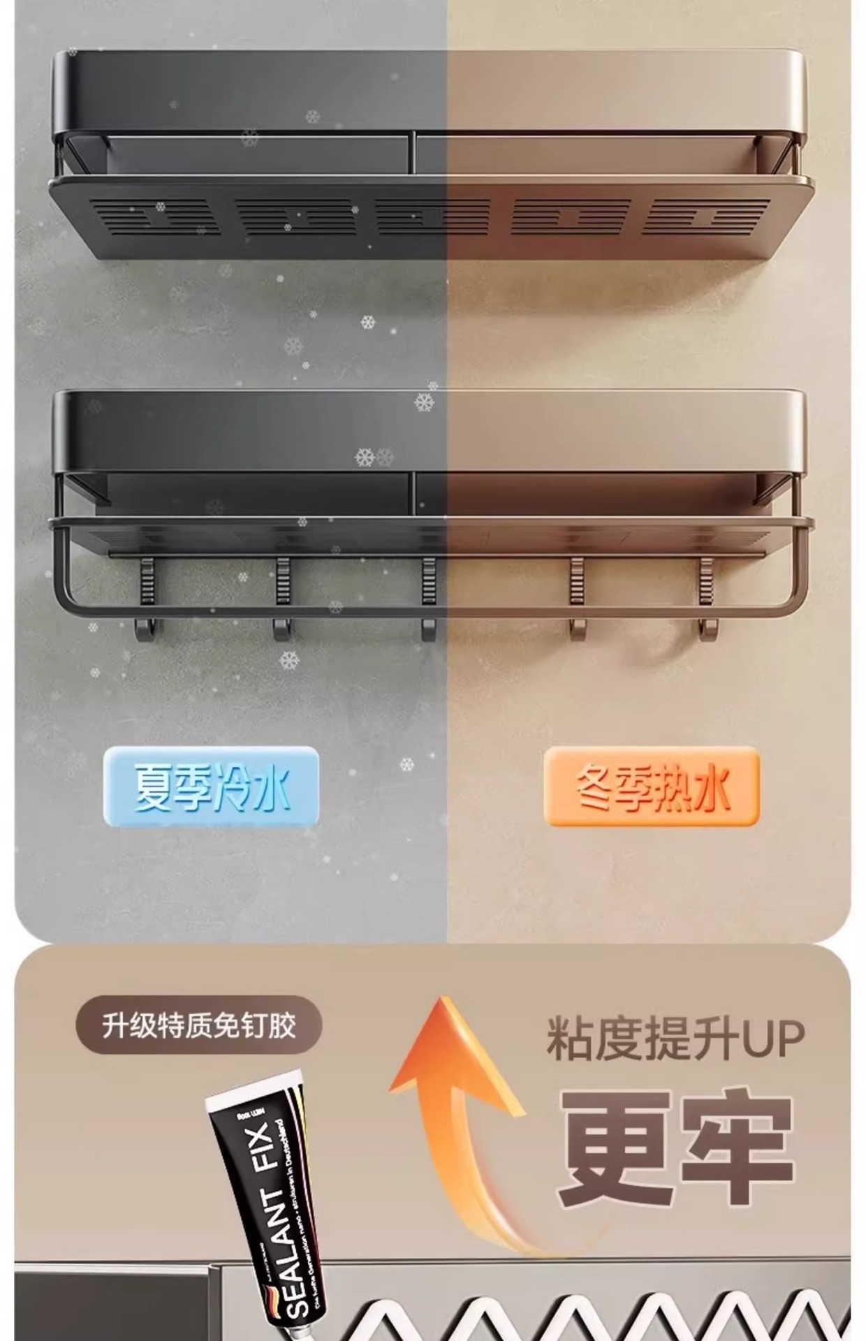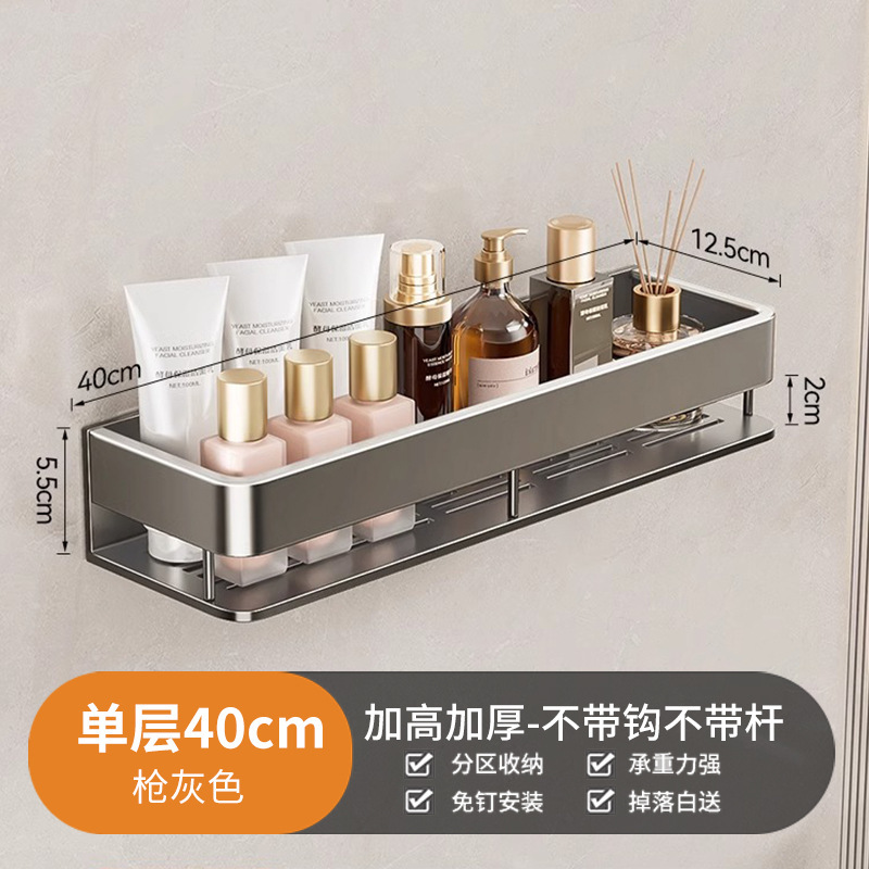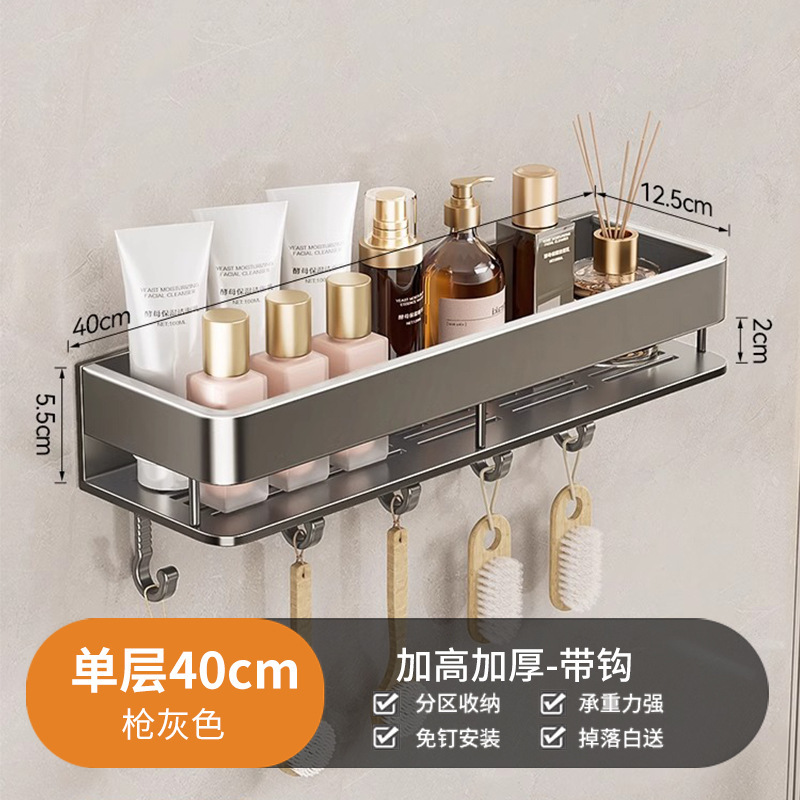 • 스페이스 알루미늄 40cm 건 그레이 - 후크가 있는 단층 [탈착 가능]