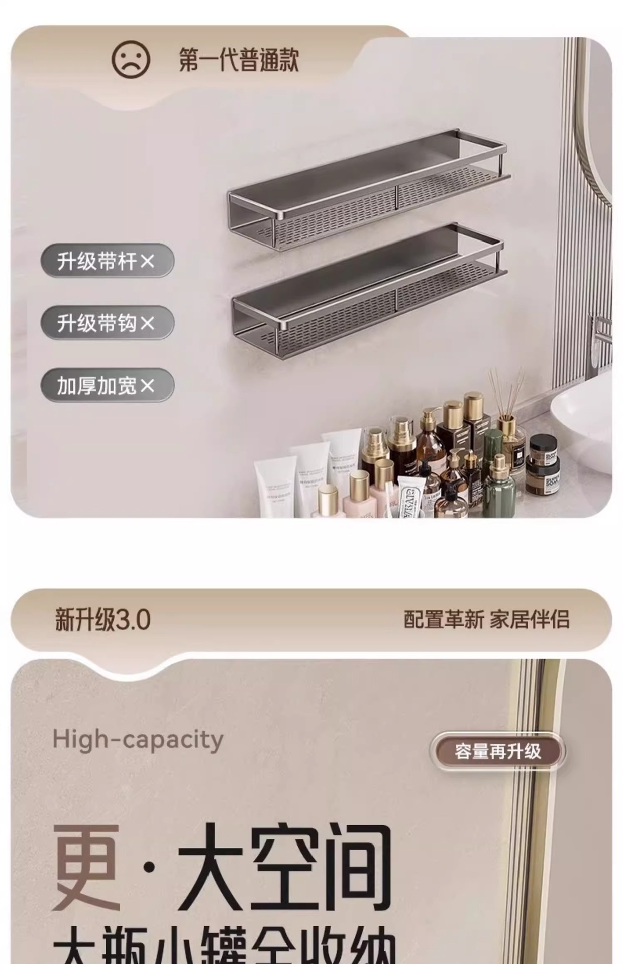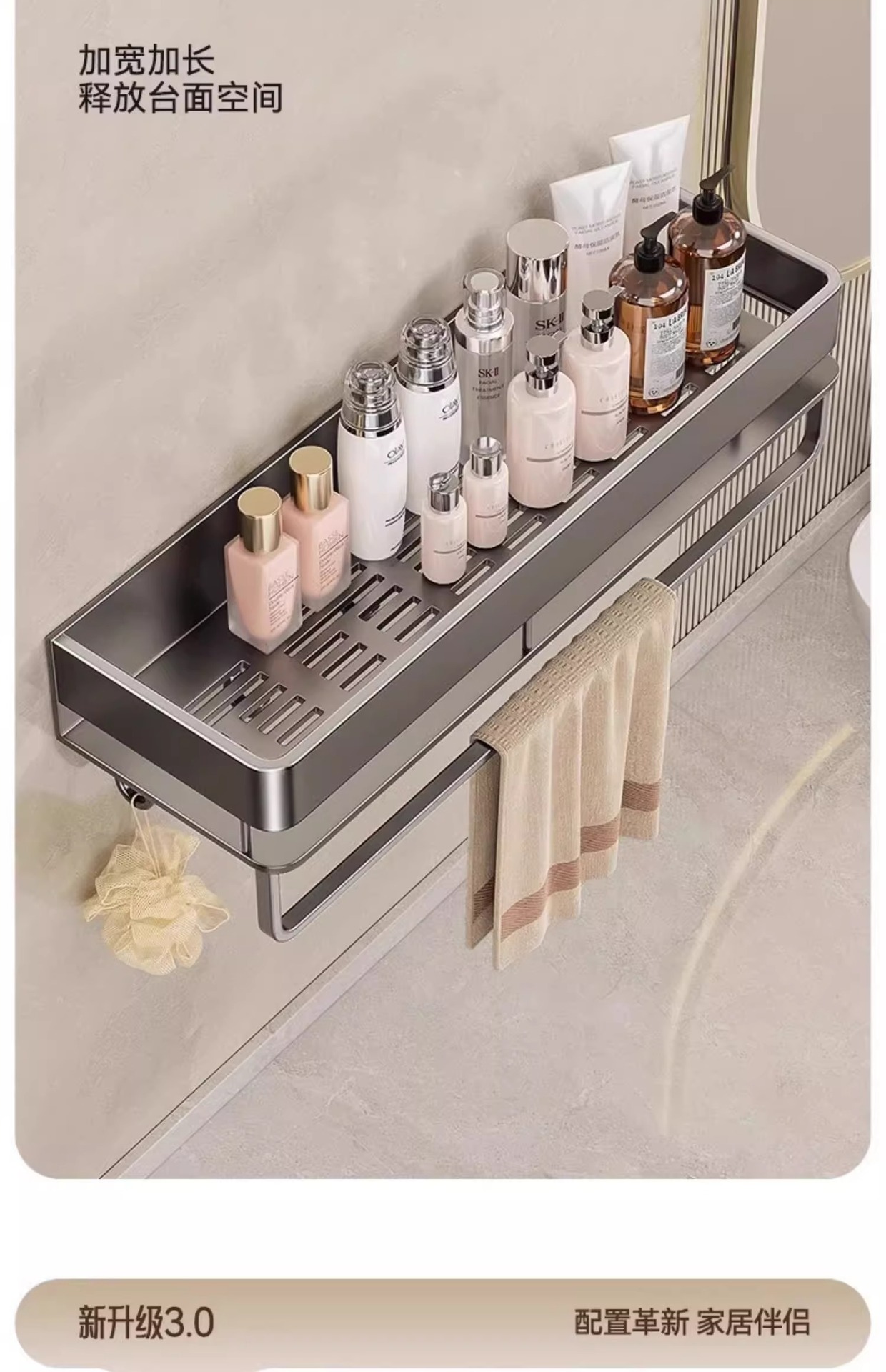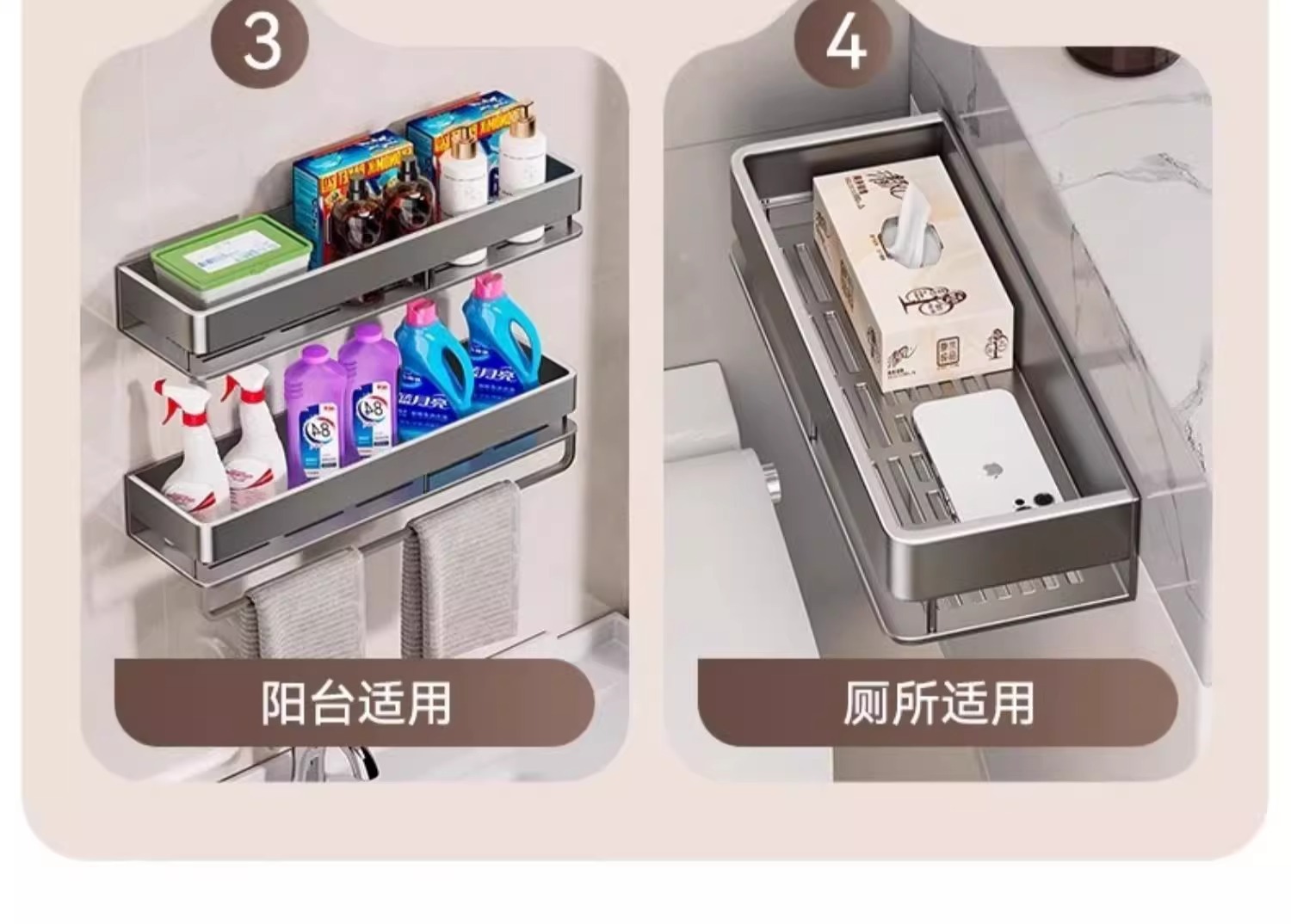 욕실 보관 랙 펀치가없는 벽걸이 형 다기능 세탁기 벽 공간 알루미늄 보관 선반 인공물 선반