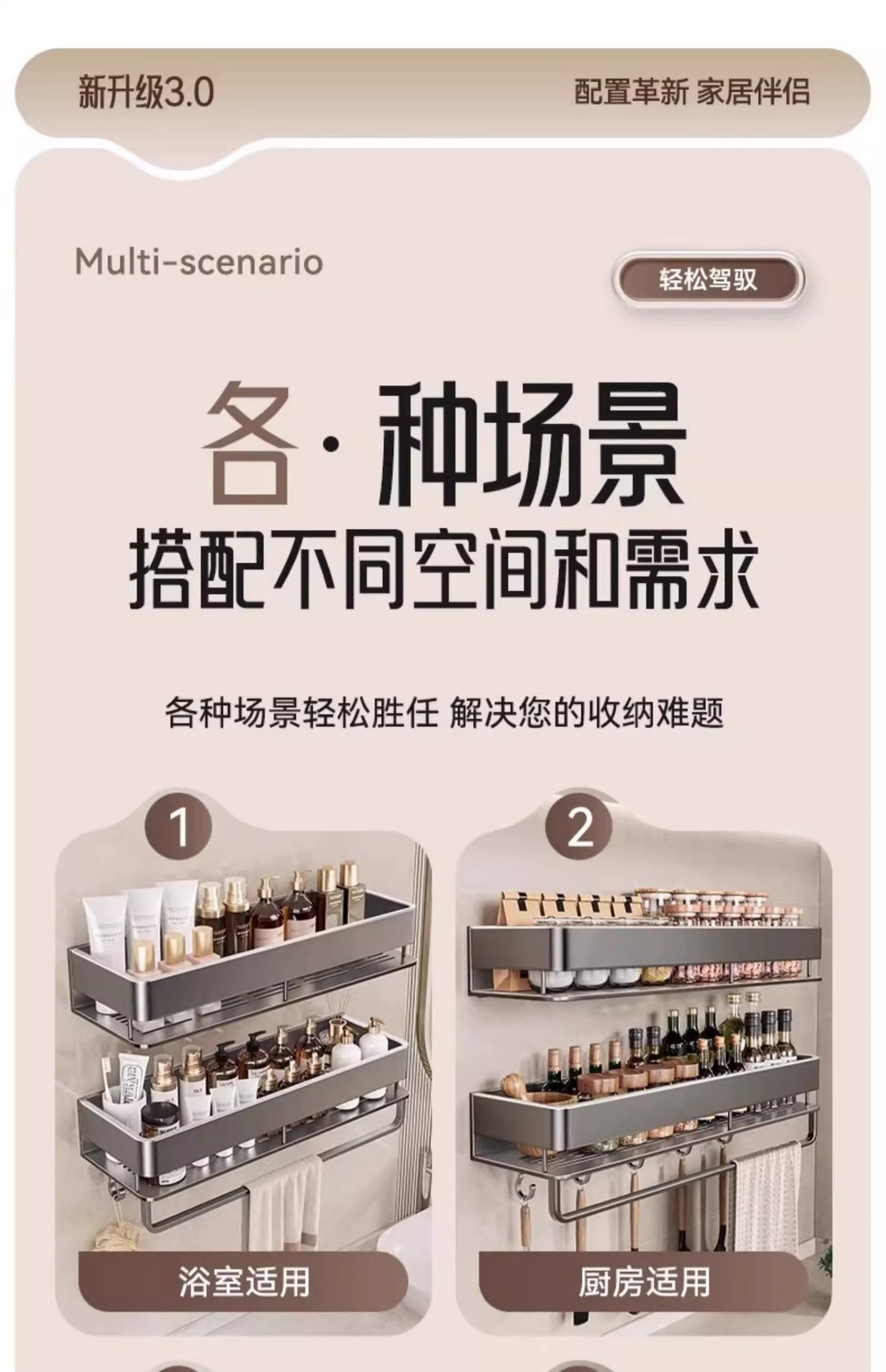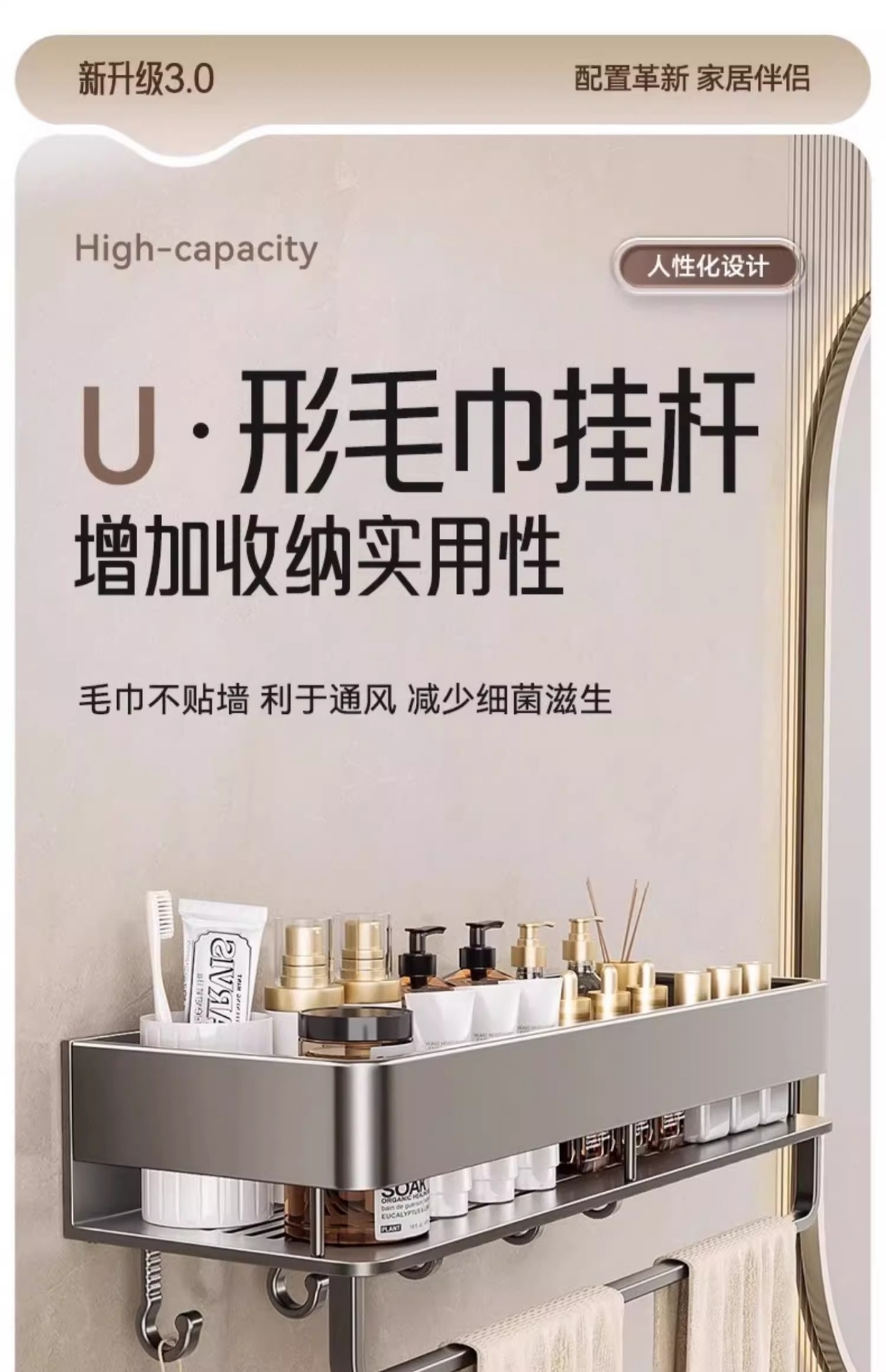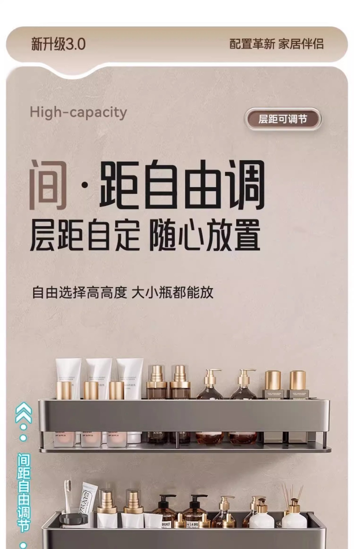 욕실 보관 랙 펀치가없는 벽걸이 형 다기능 세탁기 벽 공간 알루미늄 보관 선반 인공물 선반