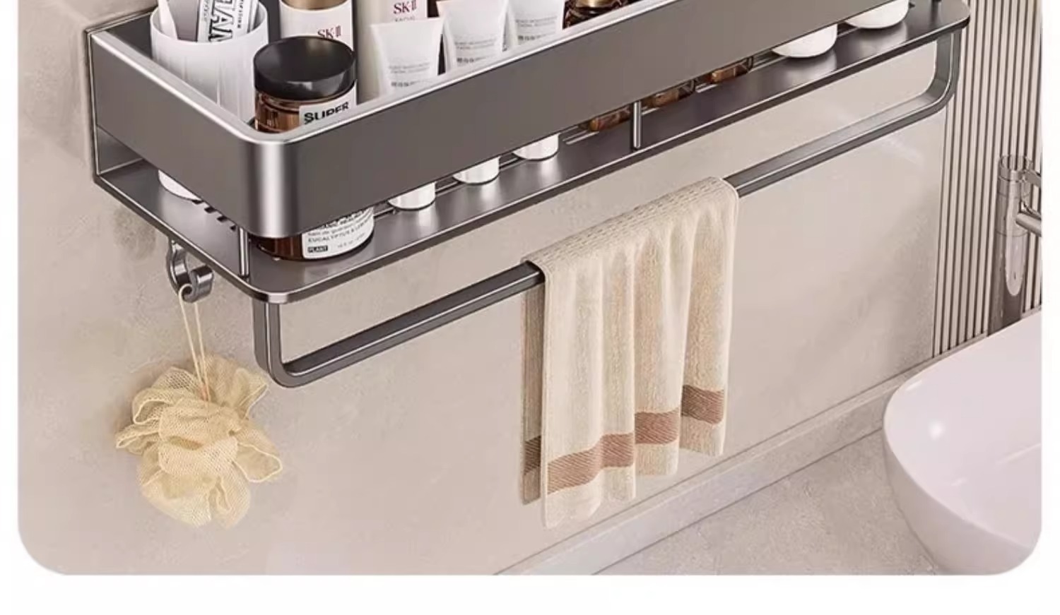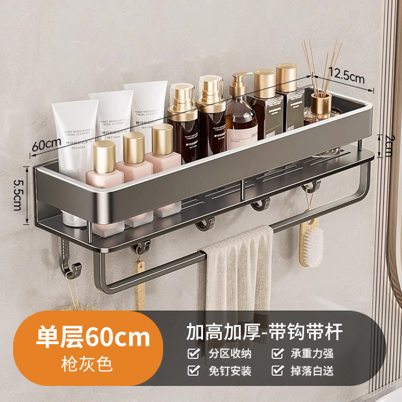 • 스페이스 알루미늄 60cm 건그레이 - 후크가 있는 단일 레이어 [탈착 가능]