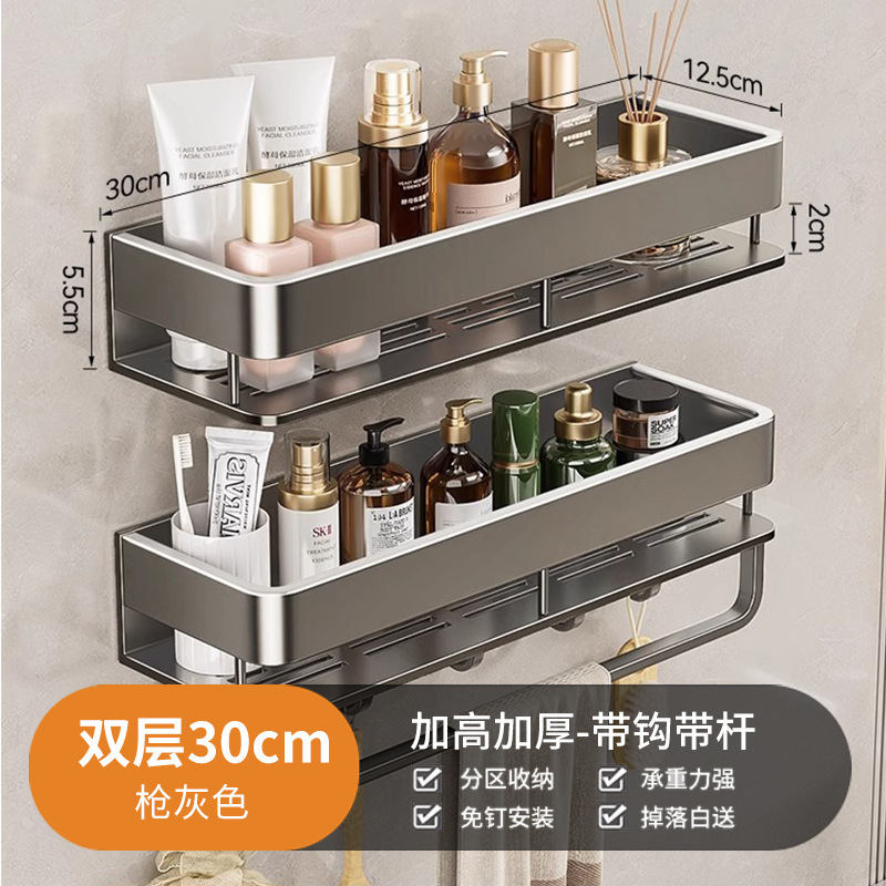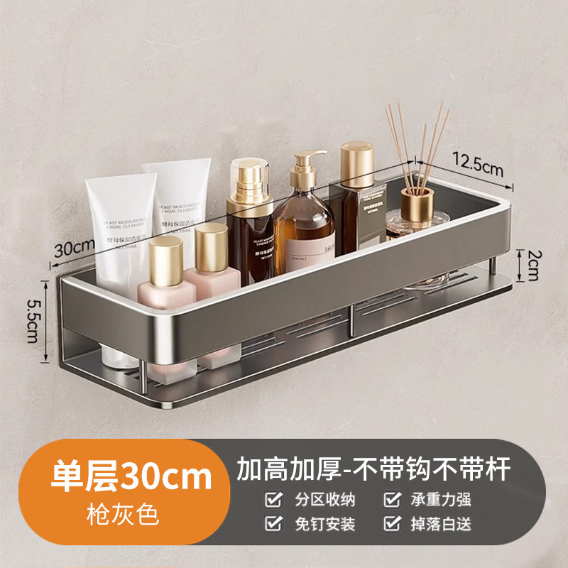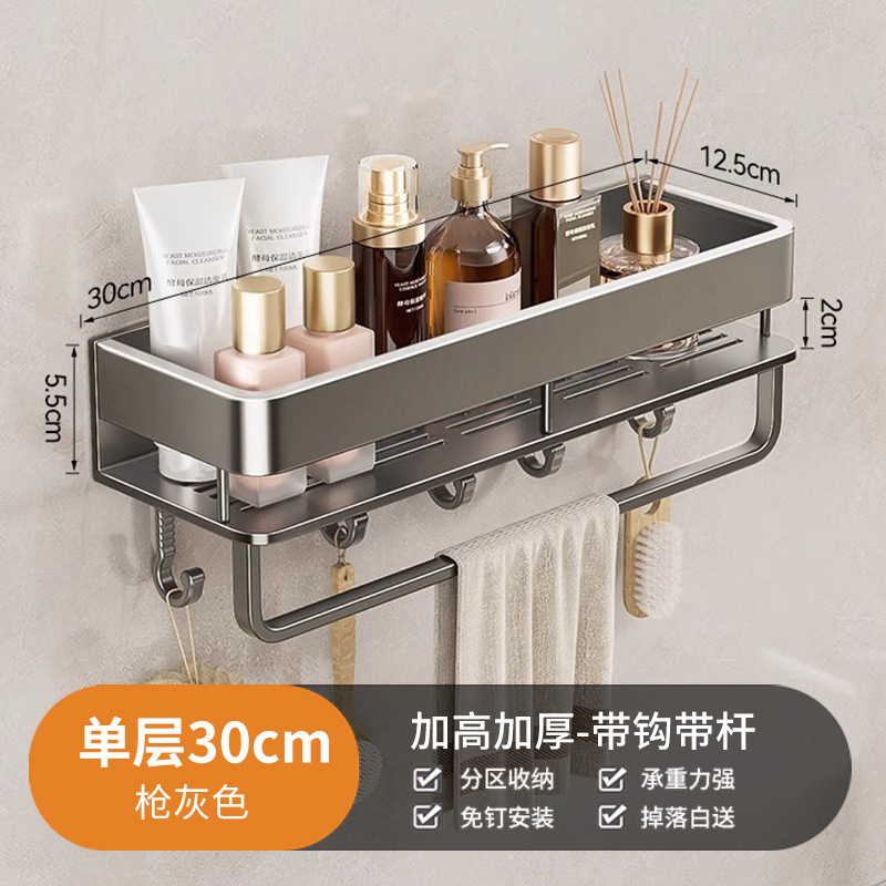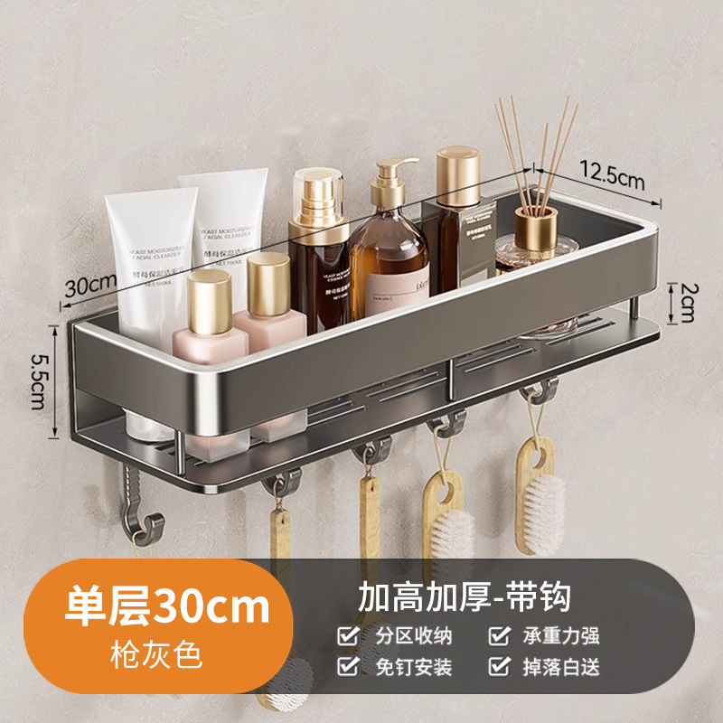 • 스페이스 알루미늄 30cm 건 그레이 - 후크가 있는 단층 [탈착 가능]