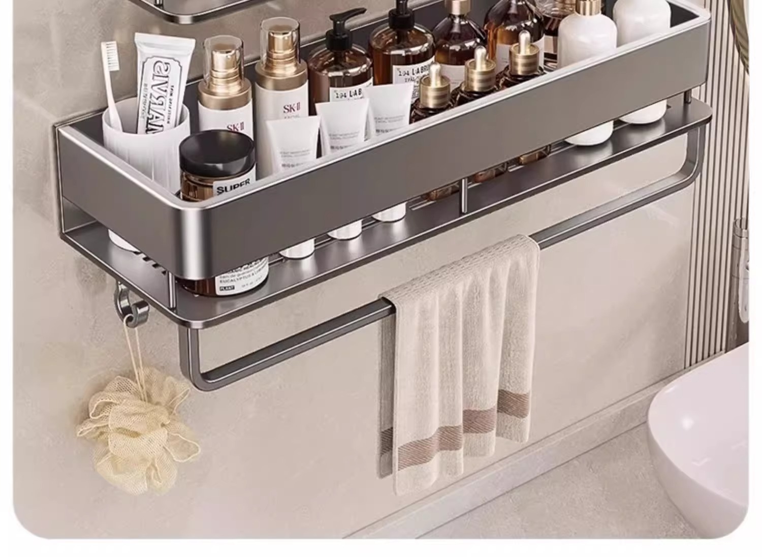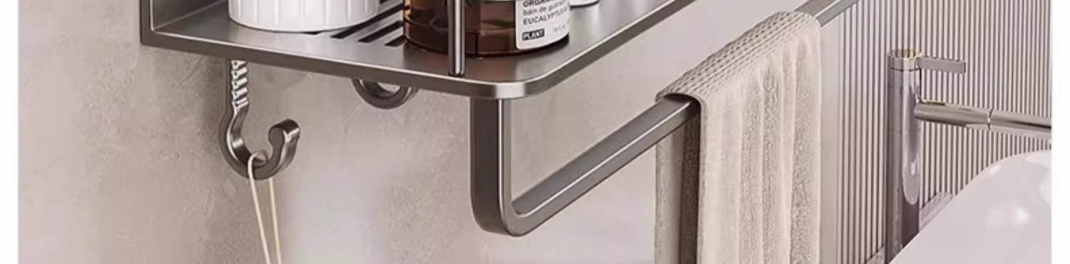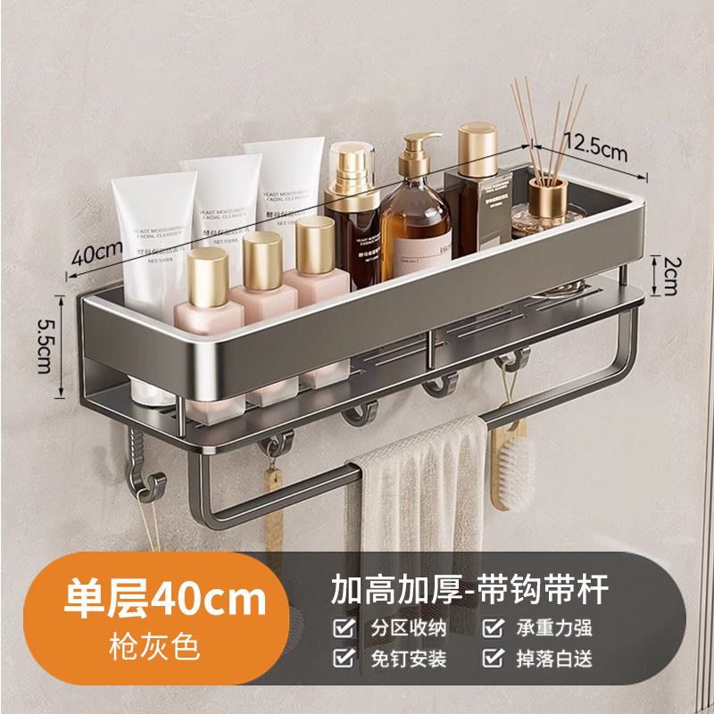 • 스페이스 알루미늄 40cm 건 그레이 - 후크가 있는 단일 레이어 [탈착 가능]