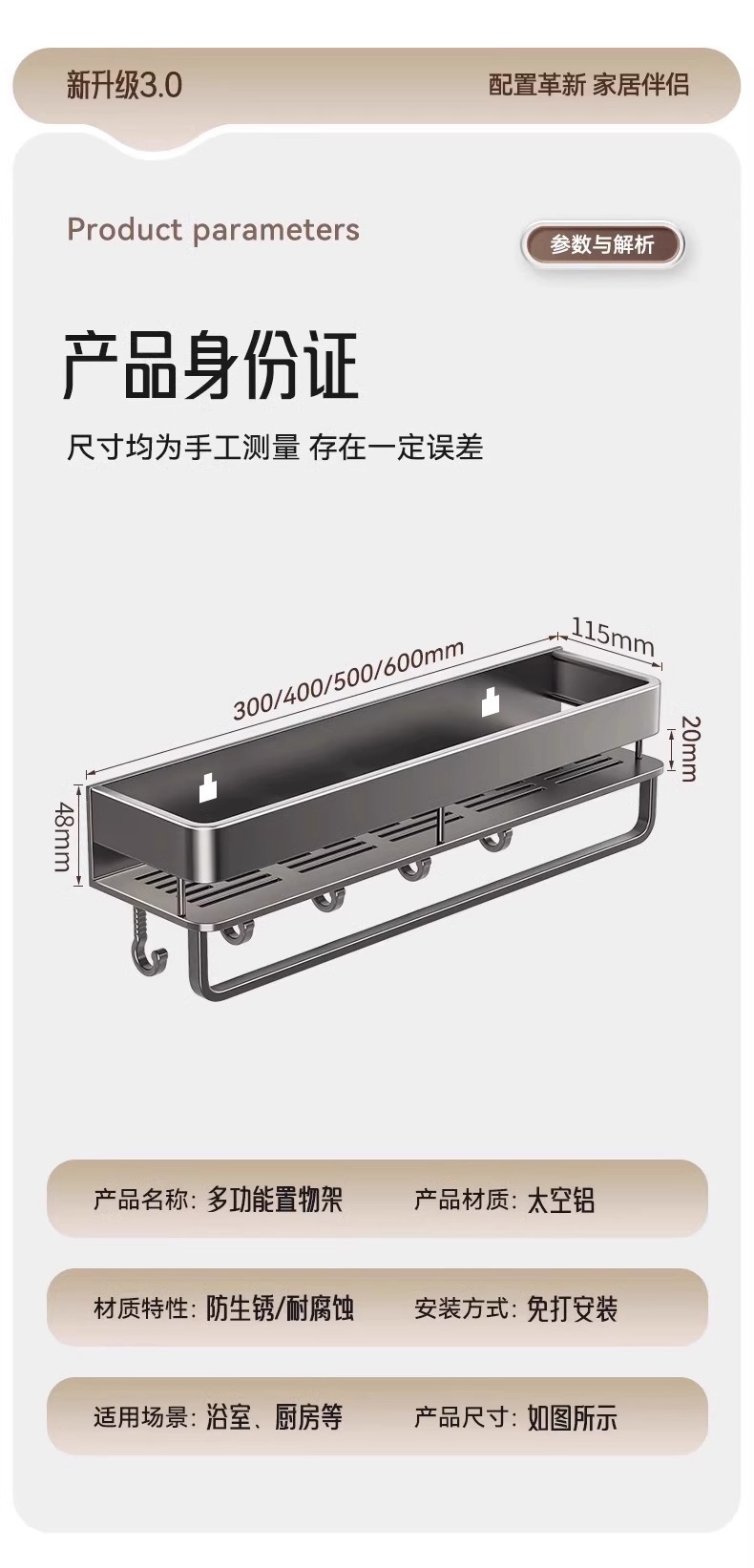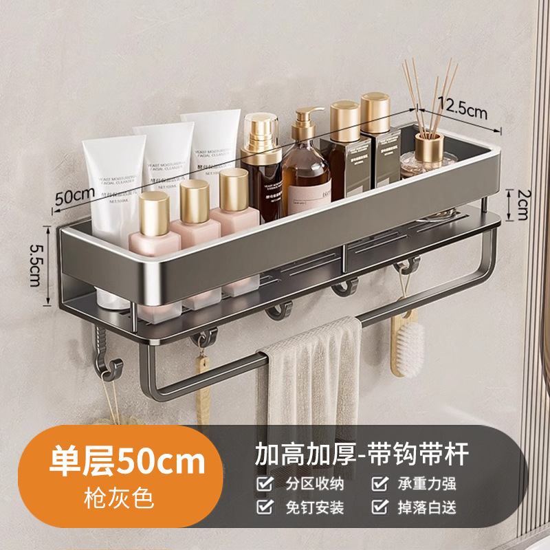 • 스페이스 알루미늄 50cm 건그레이 - 후크가 있는 단일 레이어 [탈착 가능]
