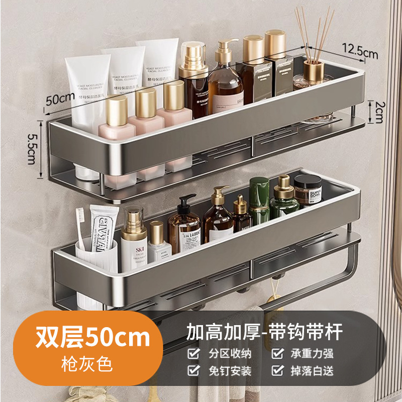 • 스페이스 알루미늄 50cm 건그레이 - 후크로드가 있는 더블 레이어 [탈착 가능]