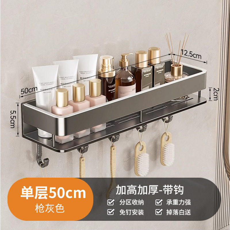• 스페이스 알루미늄 50cm 건 그레이 - 후크가 있는 단층 [탈착 가능]