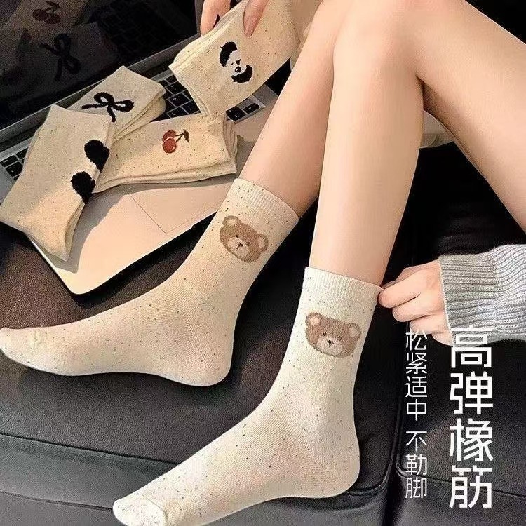 가을과 겨울 여성 양말 귀여운 귀여운 소녀 재미 양말 편안한 통기성 성격 인터넷 인기있는 귀여운 만화 흰색 여성 양말스토어 가기