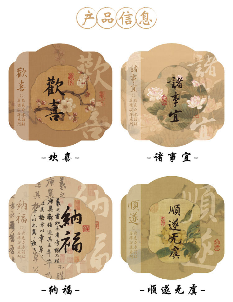 Joy Ankang 아크릴 자기 Guofeng 냉장고 스티커 복고풍 평화 축복 서예 텍스트 새해 장식 자기 흡수스토어 가기