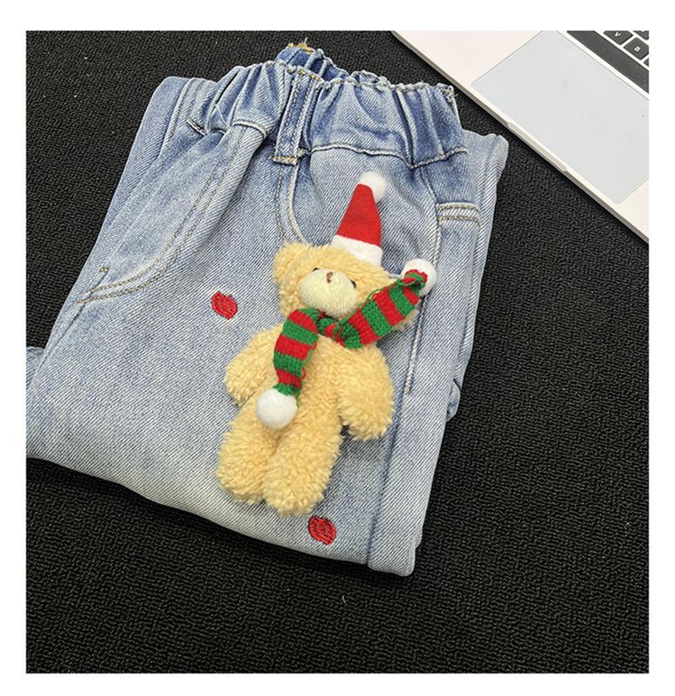 여자 청바지 겨울 기모 두꺼운 만화 캐주얼 넓은 다리 바지 한국 스타일 어린이 가을 겨울 연례 회의 바지스토어 가기