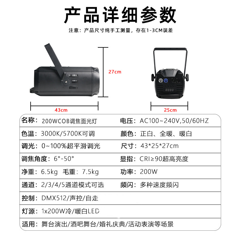 무대 조명 200W 고휘도 COB 초점 빛 웨딩 라이트 콘서트 성능 led 조명