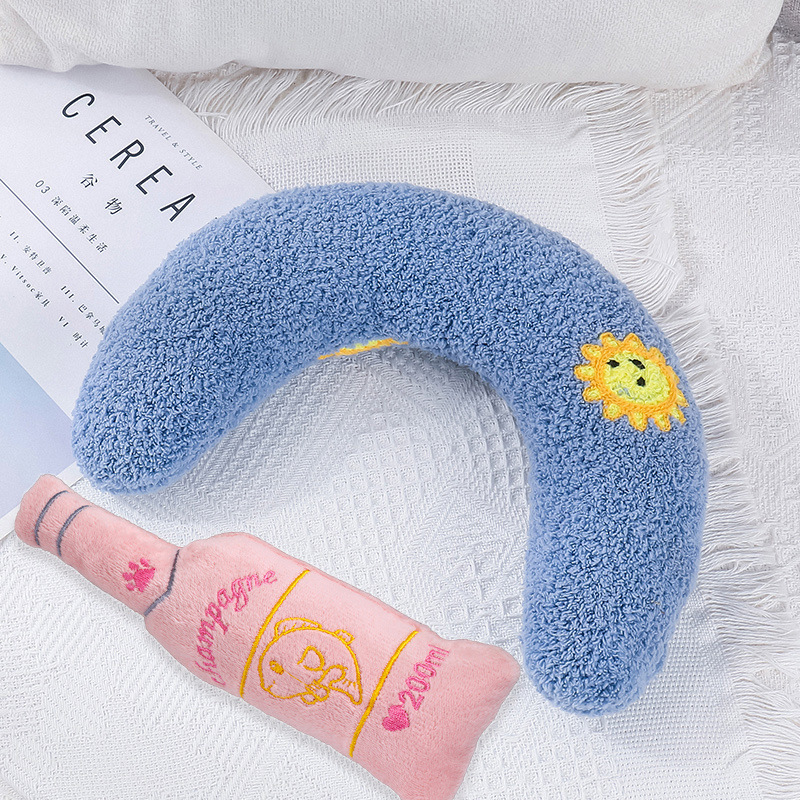 • 파란 달 모양 아기 베개 + 핑크 와인병 장난감 --- 시타이 공장 직송