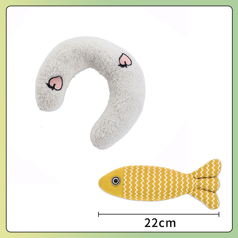 • 작은 베개 - U자형 [화이트] + 마 원단 물고기 인형 세트 --- 시타이 공장 직송