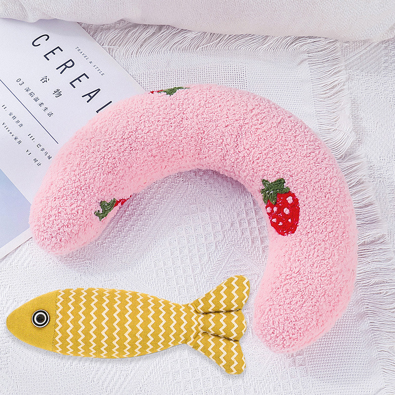 • 작은 베개 - U자형 [핑크] 마 원단 물고기 인형 세트 --- 시타이 공장 직송