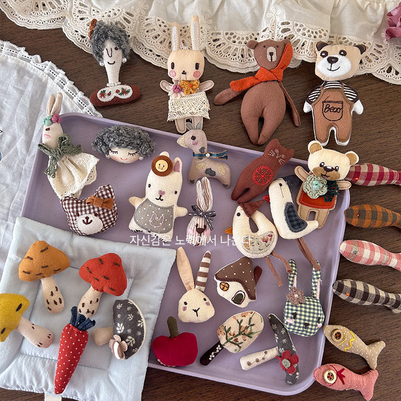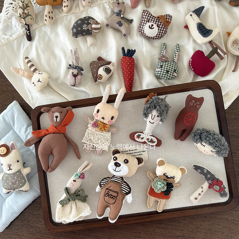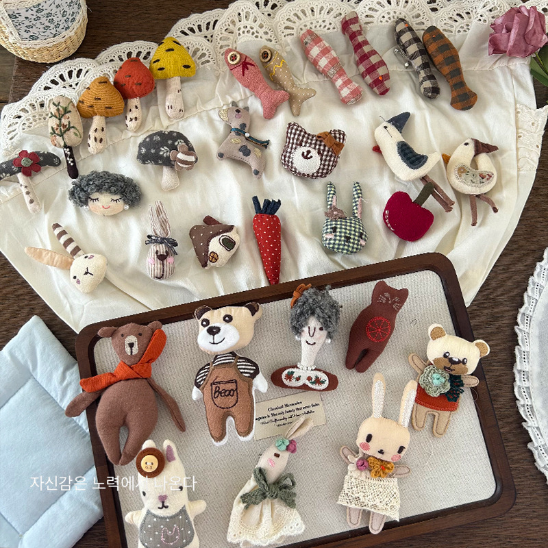 새로운 한국 스타일 귀여운 만화 직물 면 스테레오 브로치 인형 수제 핀 액세서리 가방 의류 액세서리스토어 가기