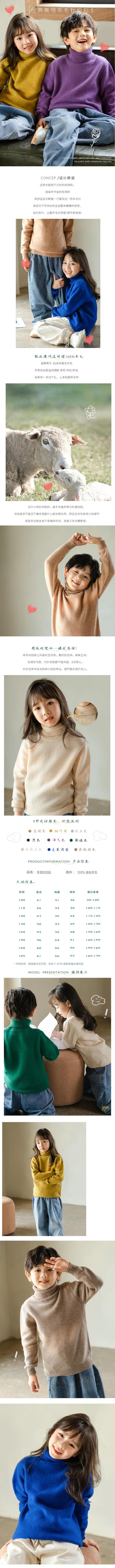 순수한 양모 24 가을과 겨울 소년 소녀를위한 새로운 하이 칼라 어린이 캐시미어 스웨터 아기를위한 얇은베이스 니트 스웨터스토어 가기