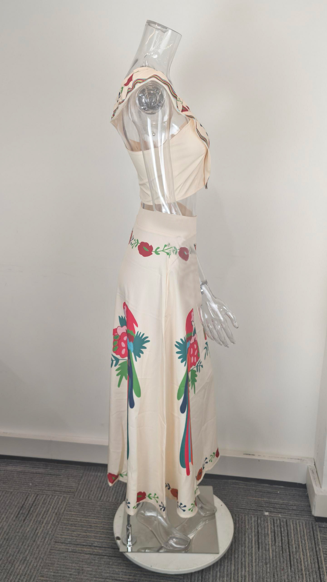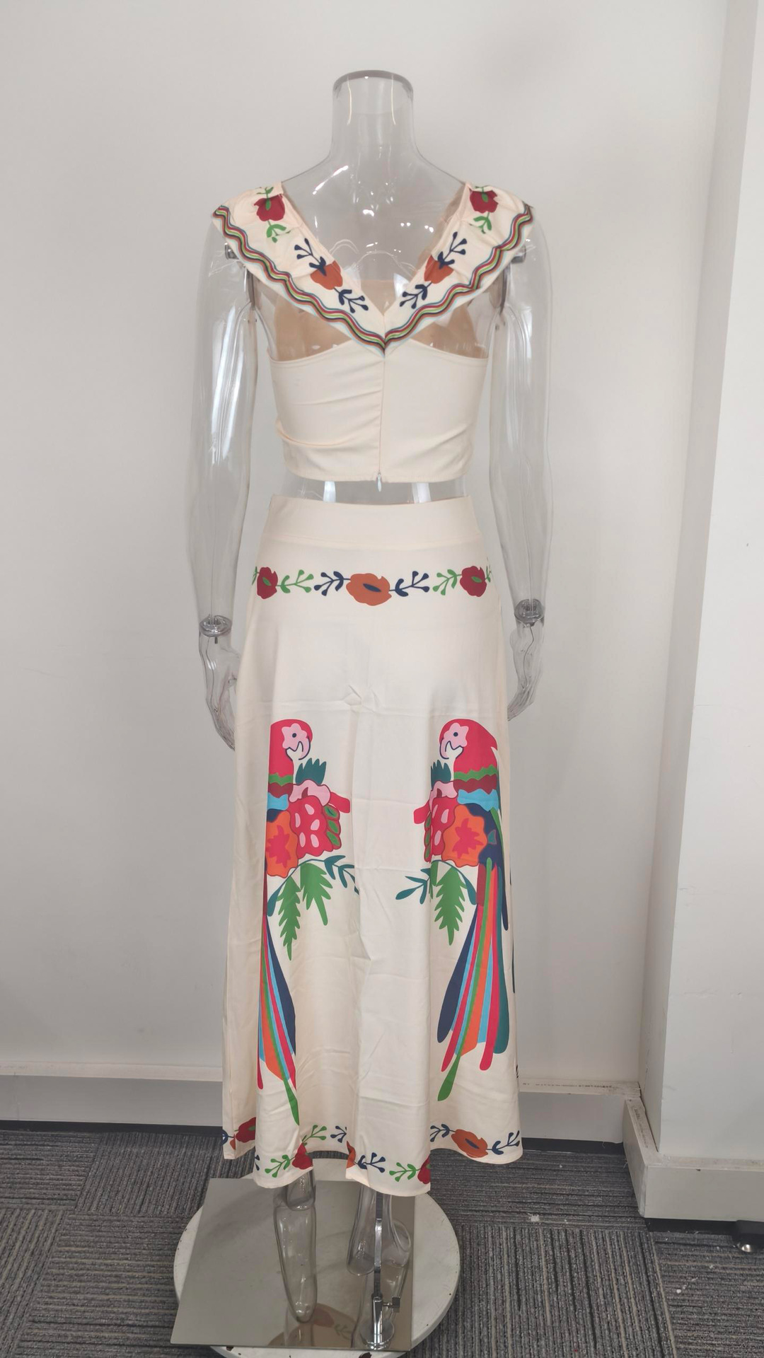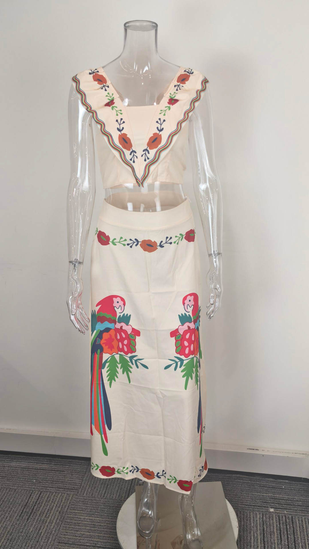 아마존 국경 유럽 및 미국 여성 의류 2025 봄 새 인쇄 러플 탑 오버 스커트 패션 세트