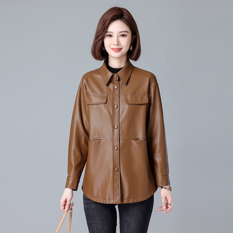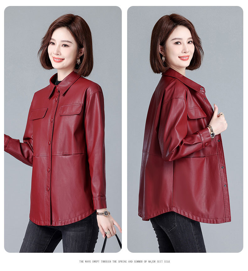 Caffland 2024 가을 새 가죽 자켓 여성 가죽 자켓 여성 가죽 자켓 느슨한 슬리밍 플러스 사이즈 올 매치스토어 가기