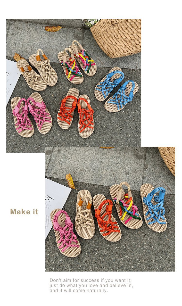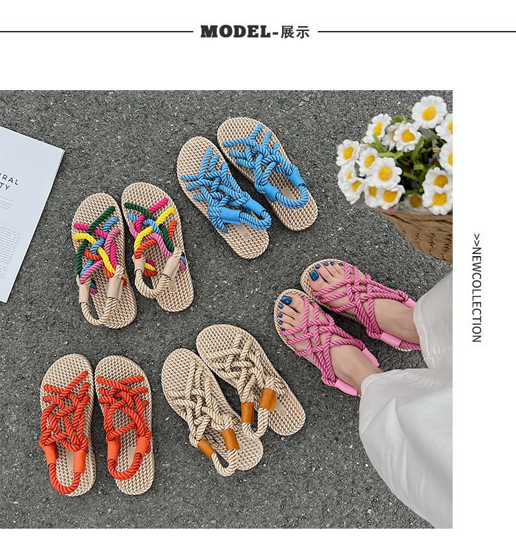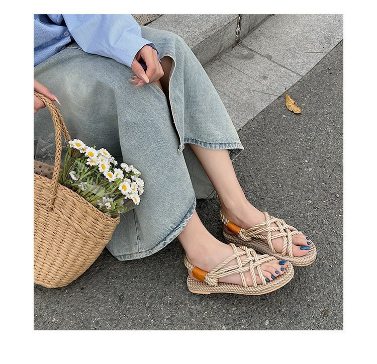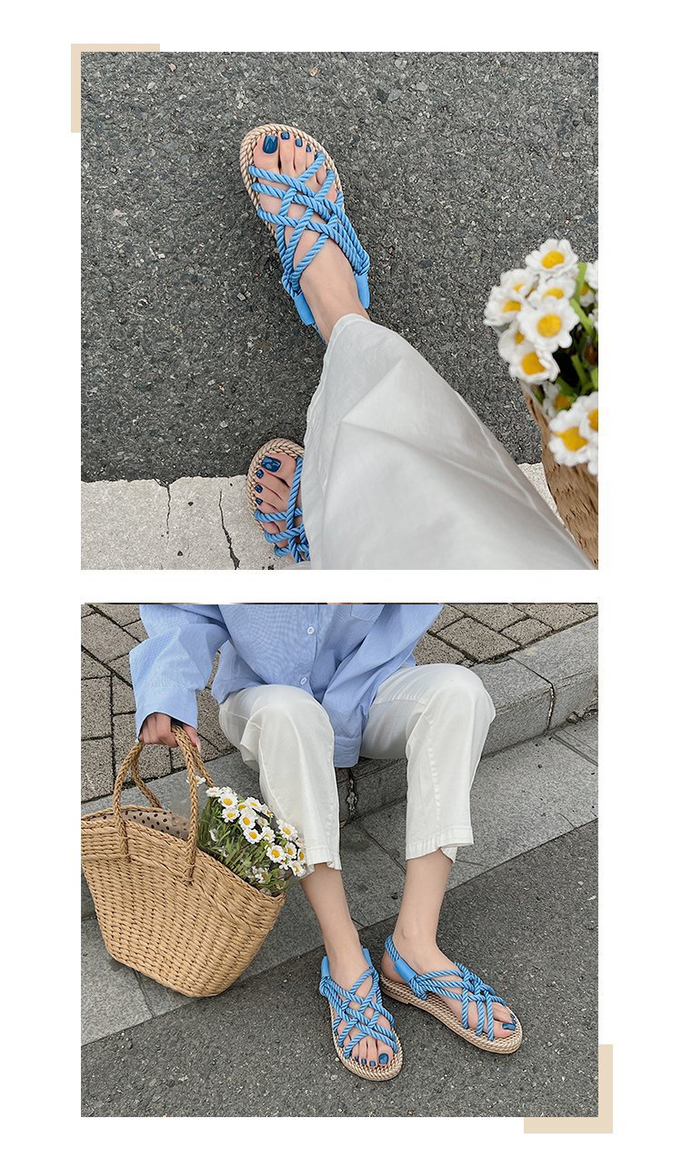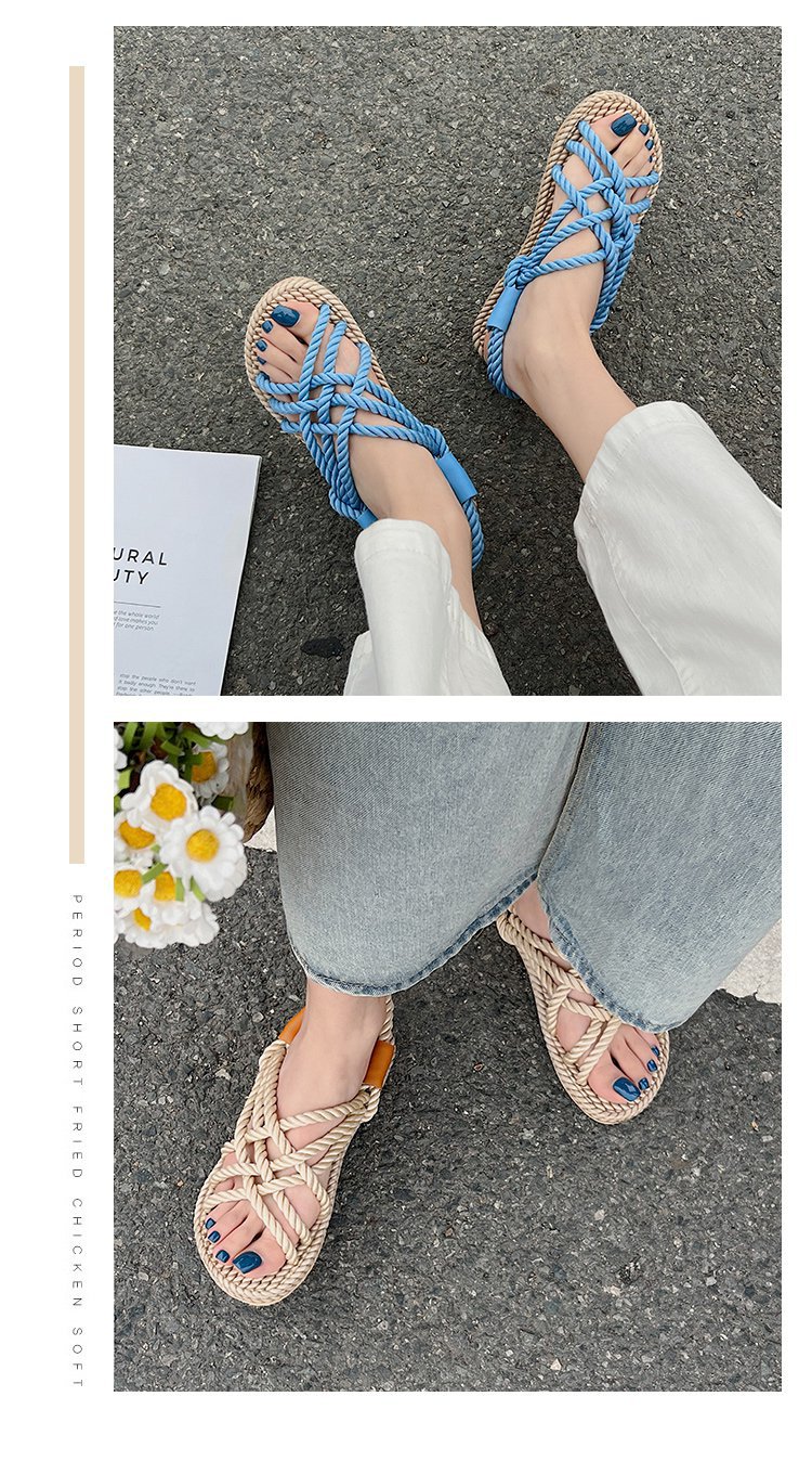 여성 플랫 짠 샌들 여자 여름 2024 새로운 의상 비치 보헤미안 로마 여성용 샌들스토어 가기