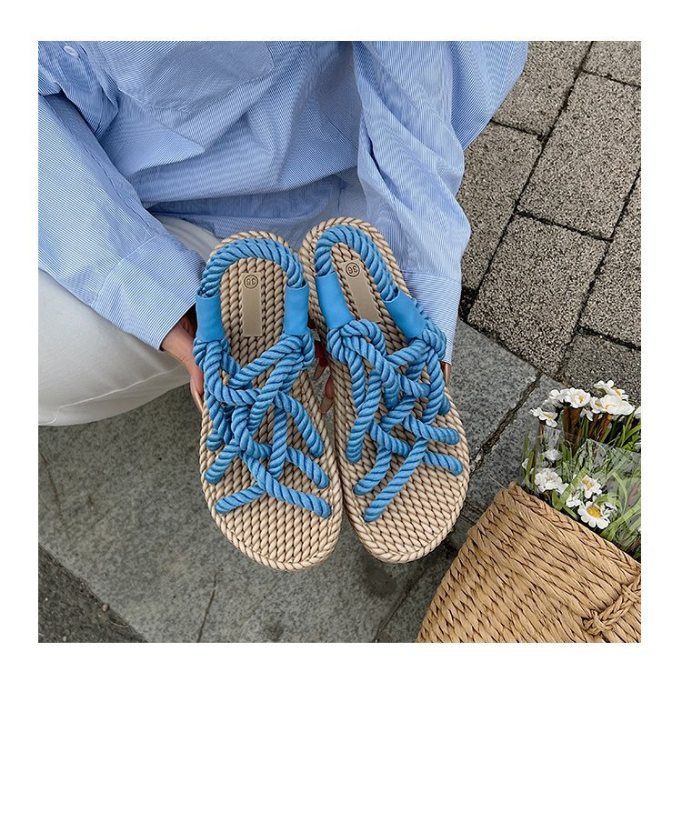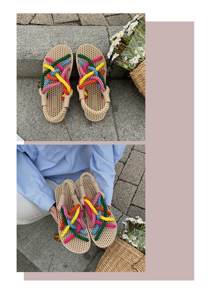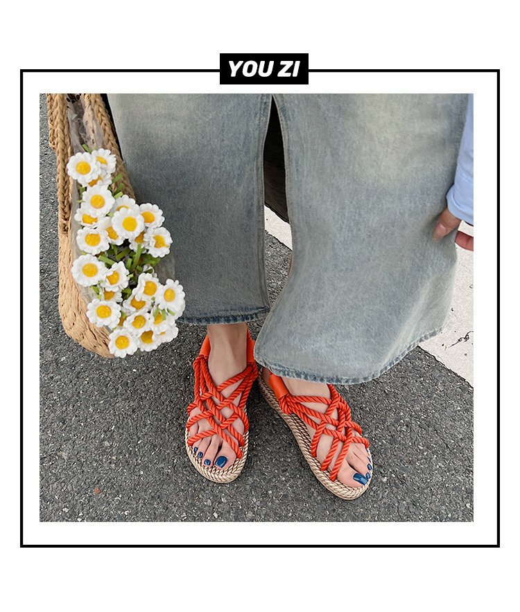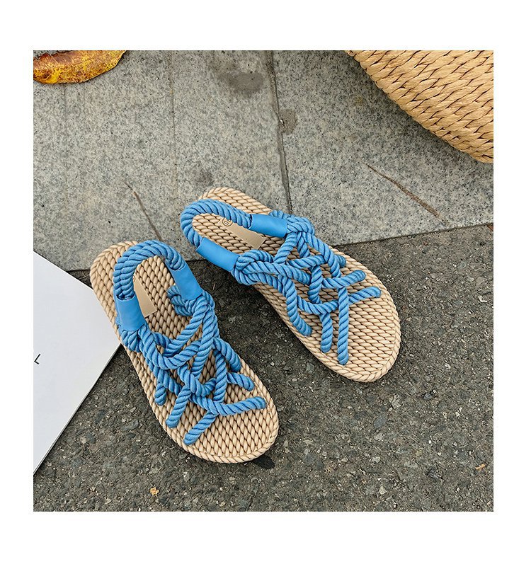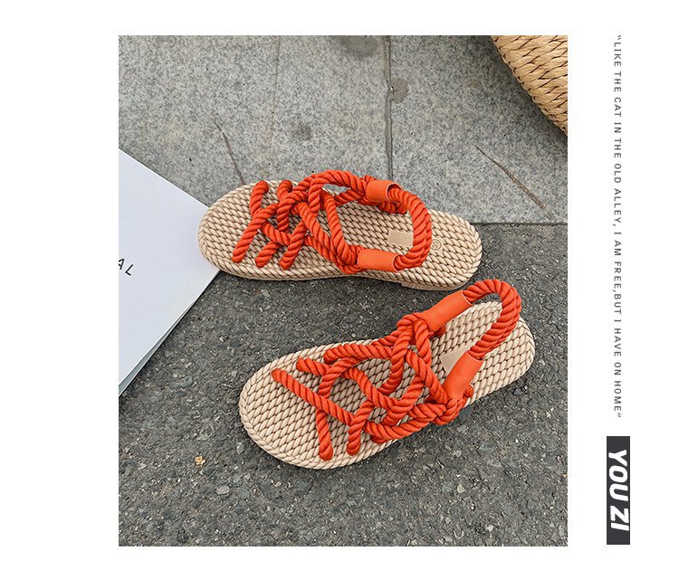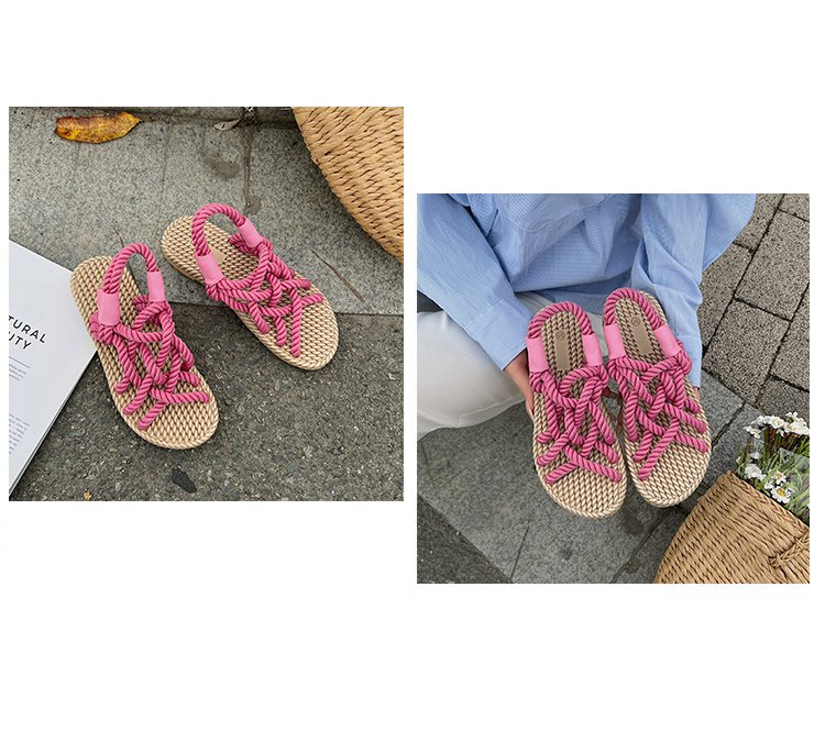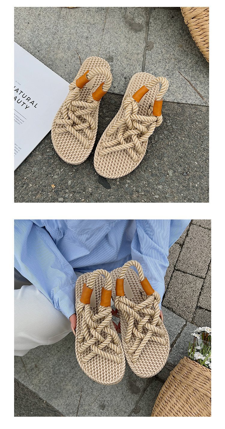 여성 플랫 짠 샌들 여자 여름 2024 새로운 의상 비치 보헤미안 로마 여성용 샌들스토어 가기