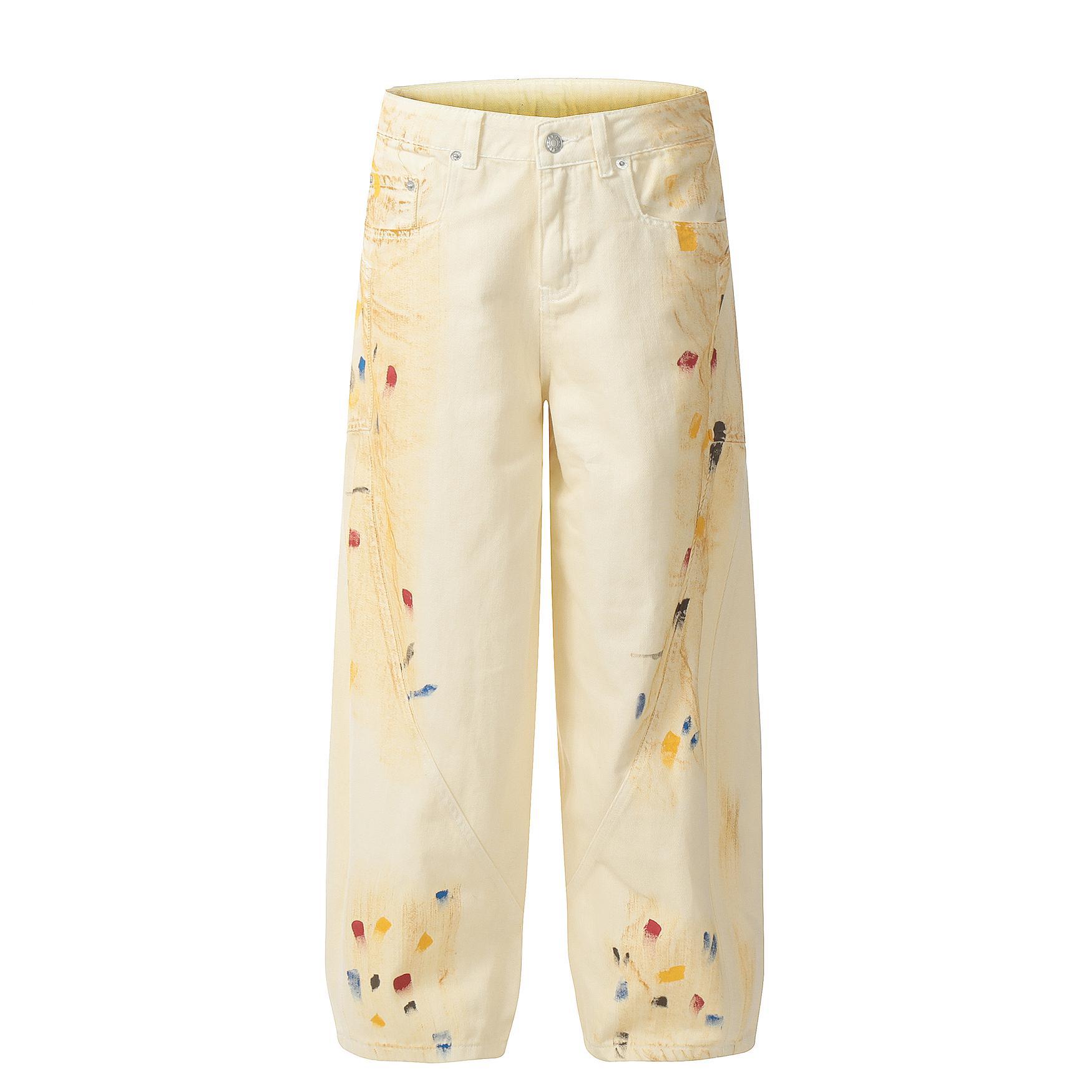 하이 스트리트 빈티지 스프레이 페인트 스플래시 잉크 디자인 센스 틈새 청바지 남성 힙합 패션 브랜드 느슨한 세탁 오래 된 바지스토어 가기
