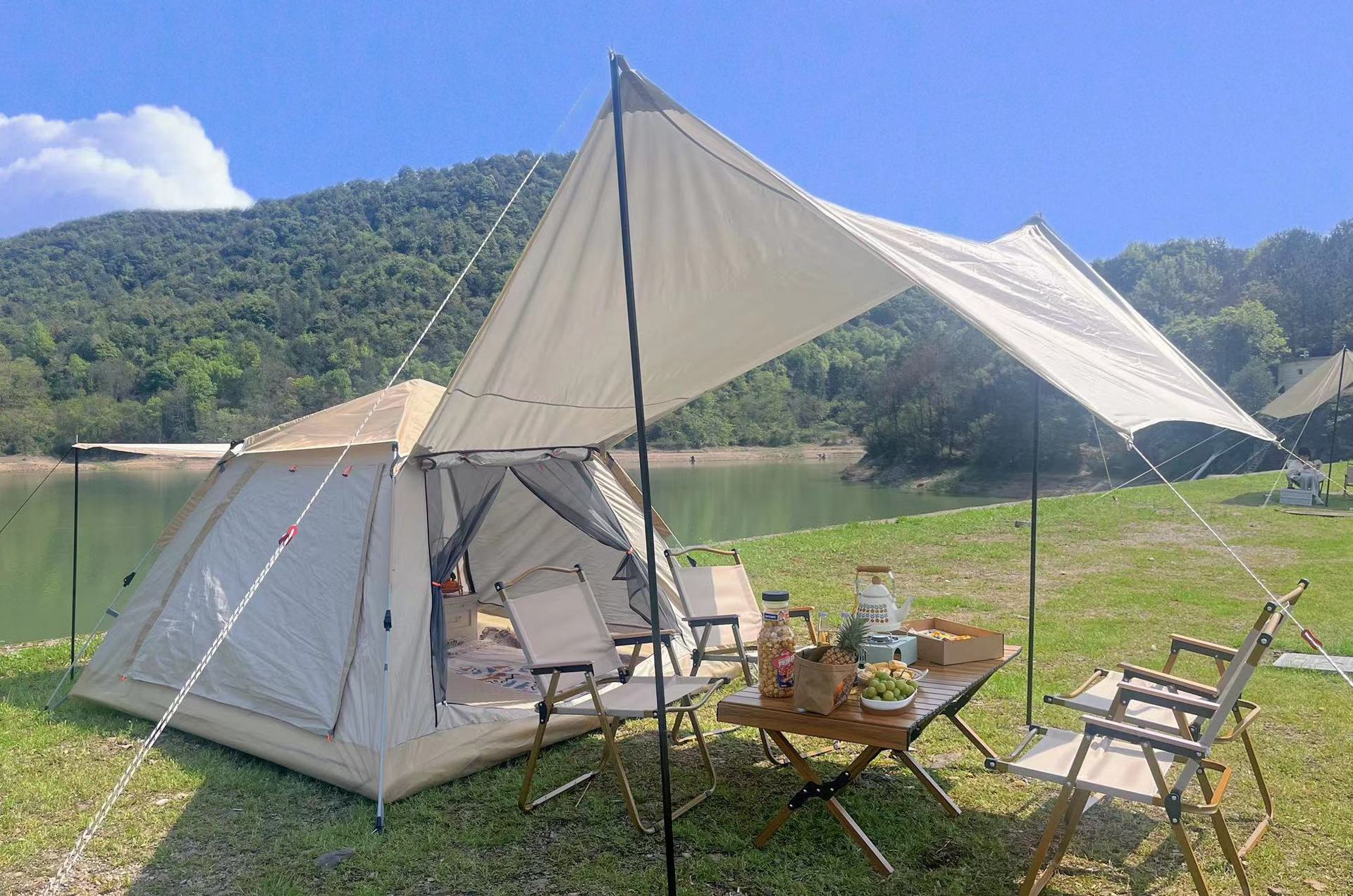 텐트 야외 캐노피 통합 휴대용 접이식 내진 야영 완전 자동 투인원 차양