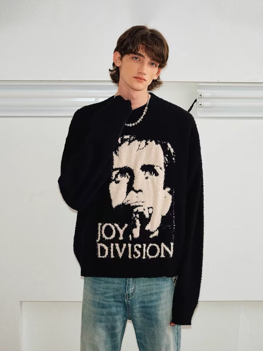 2025 새로운 미국 스타일 레트로 자카드 니트 게으른 스타일 크루 넥 스웨터 남성과 여성을위한 가을 겨울 패션 브랜드 스웨터스토어 가기