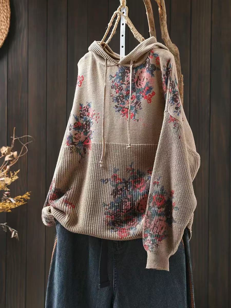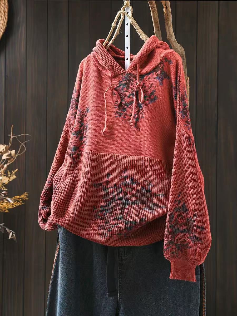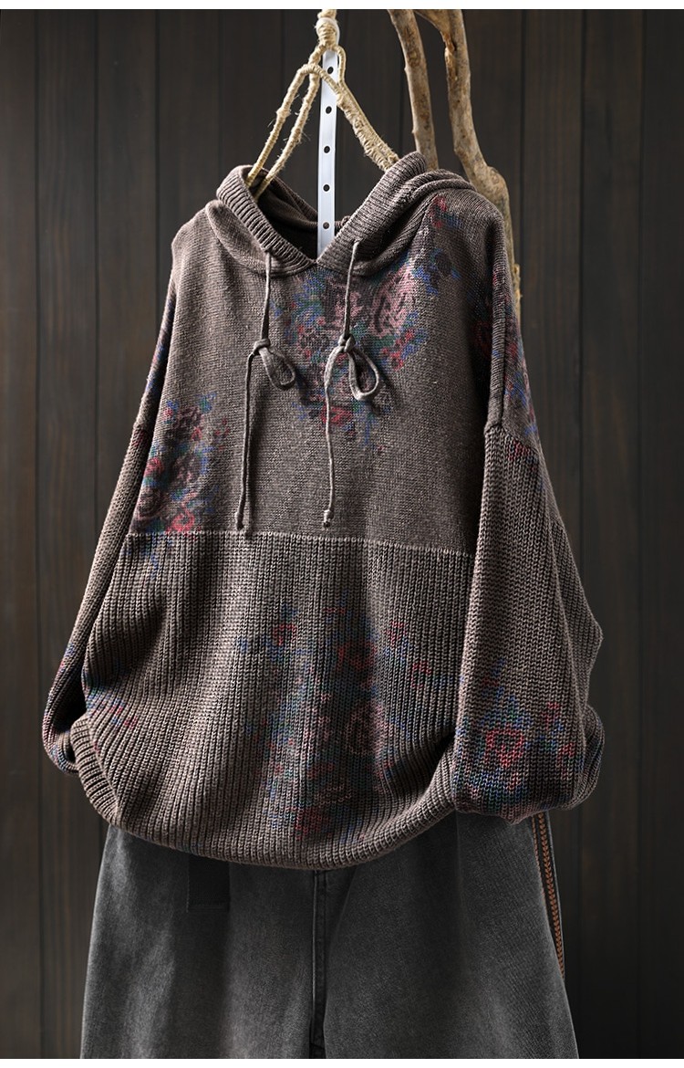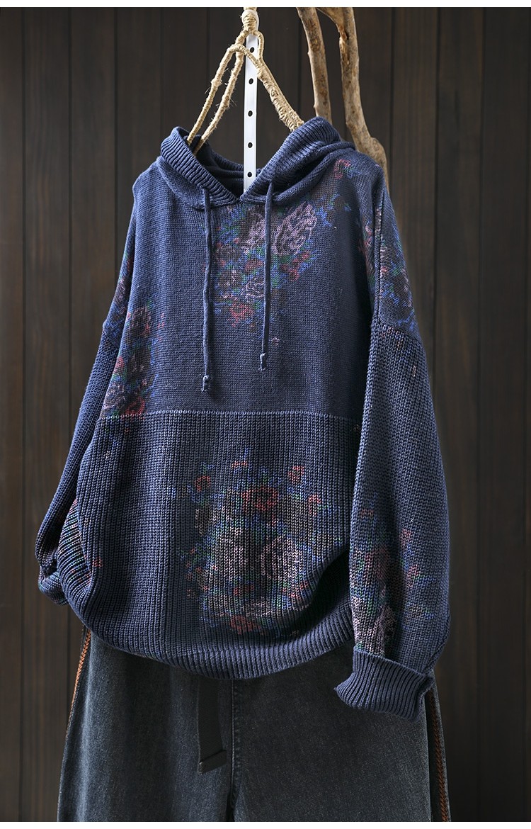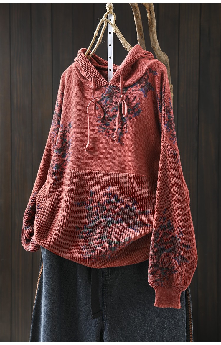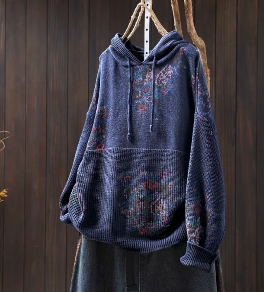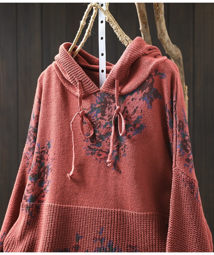 겨울 뉴 컬러 후드 코튼 스웨터 여성용 루즈 레트로 게으른 풀오버 스웨터 8091