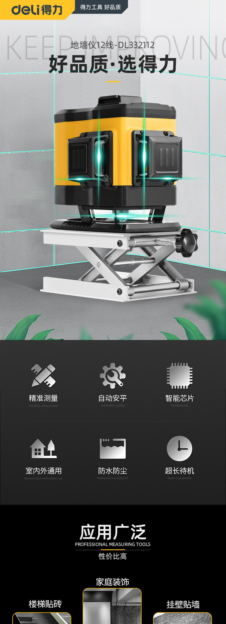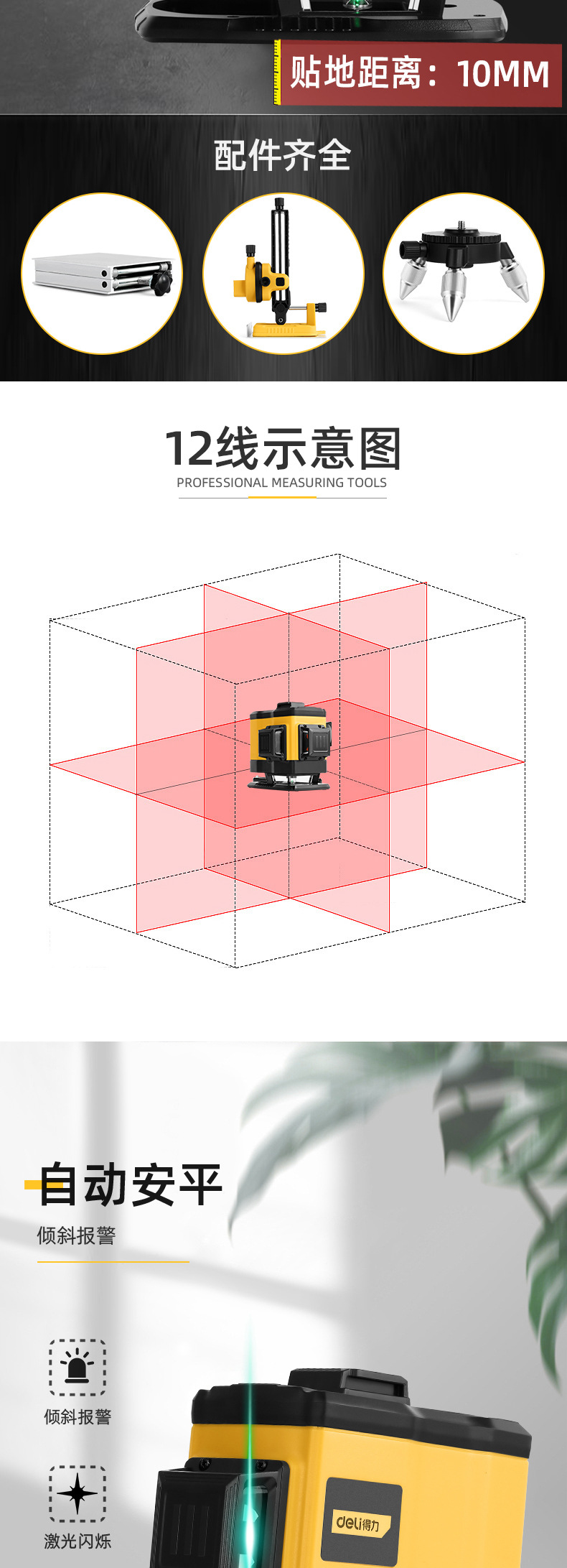 델리 12 라인 적외선 레벨 녹색 고정밀 강한 빛 얇은 선 벽 대 지상 올인원 블루 레이저