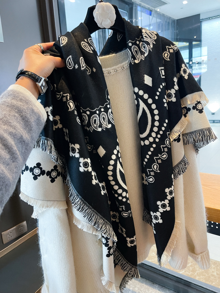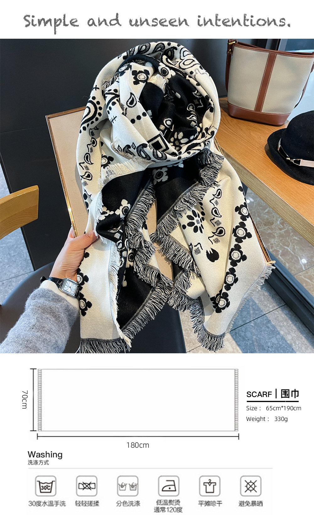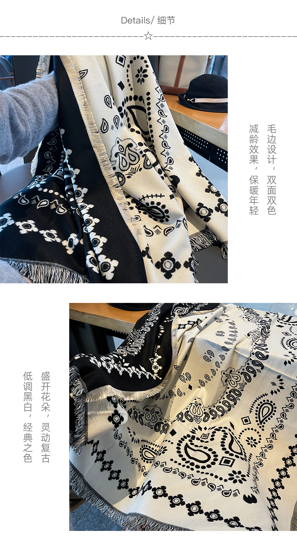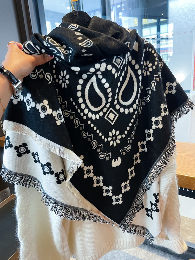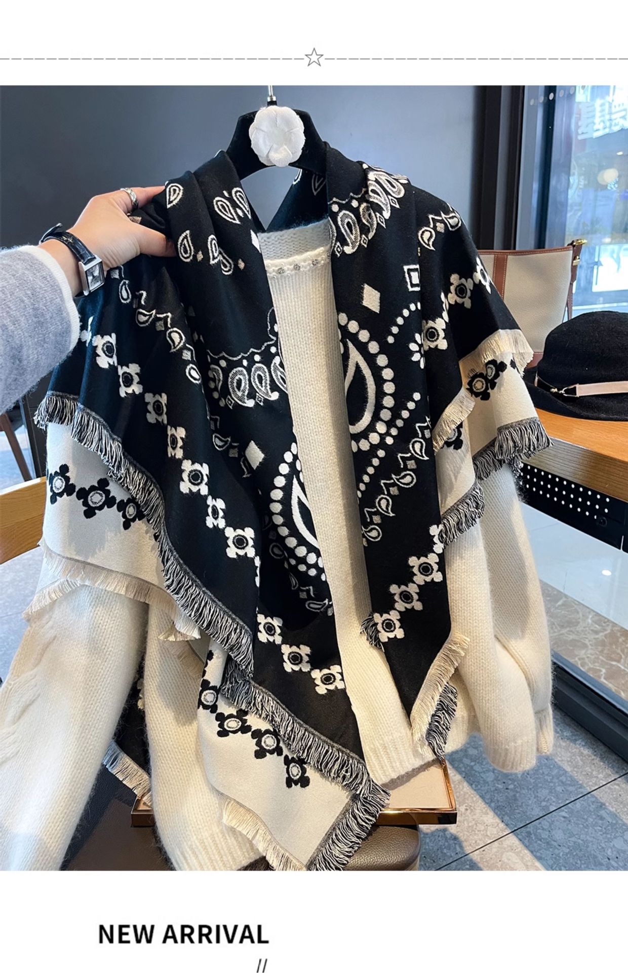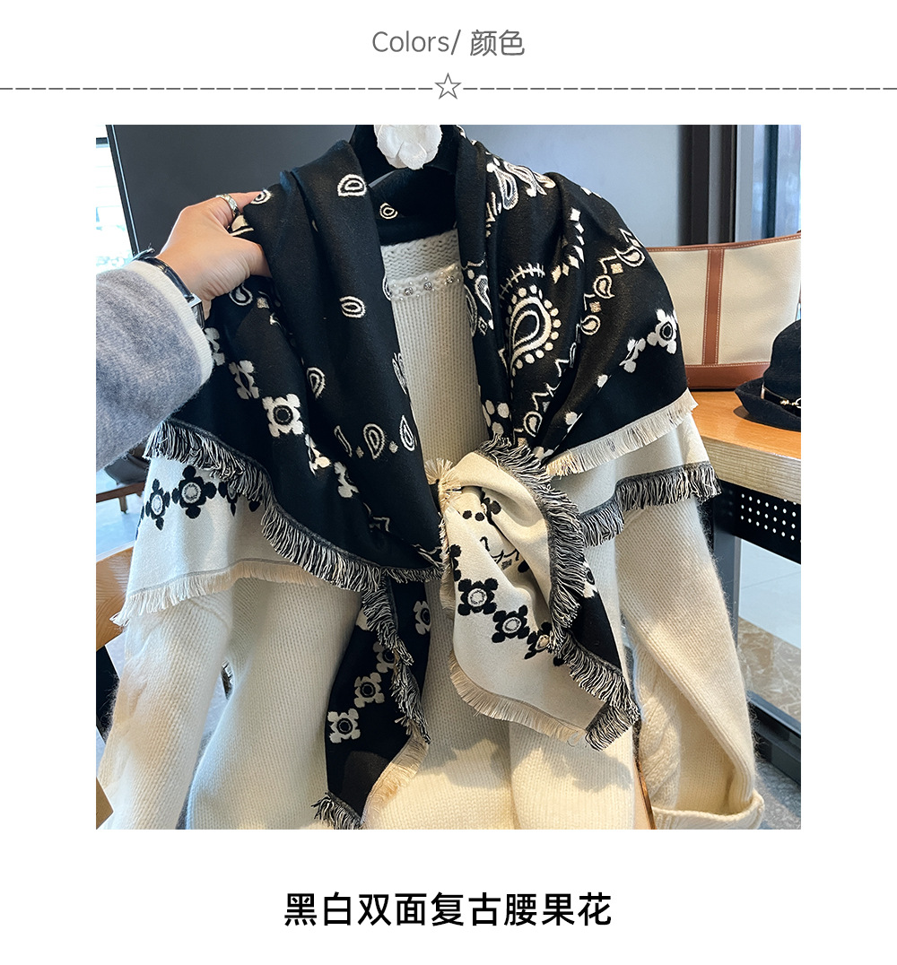 미니멀리스트 오리엔탈 뷰티 양면 캐시미어 두꺼운 대형 스퀘어 스카프 여성 겨울 목도리 이중 목적 짧은 수염 래플 비즈니스스토어 가기