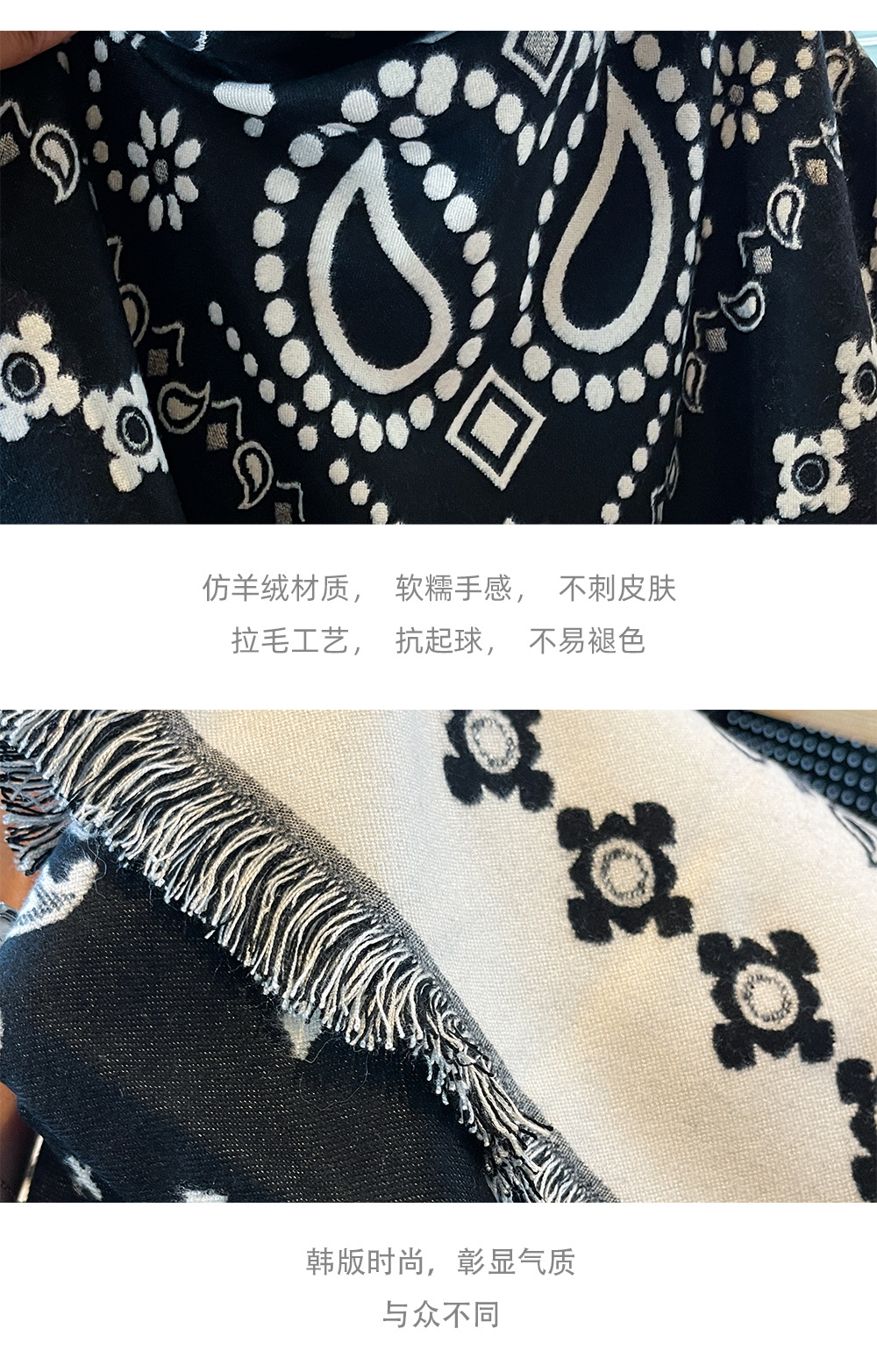 极简东方美双面仿羊绒加厚大方巾围巾女冬季披肩两用短须毛边商务