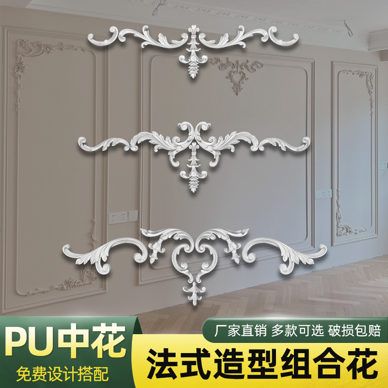 프랑스 PU 조합 조각 배경 벽 모델링 중간 꽃 장식 테두리 장식 스트립 천장 모델링 각도 꽃 장식 꽃