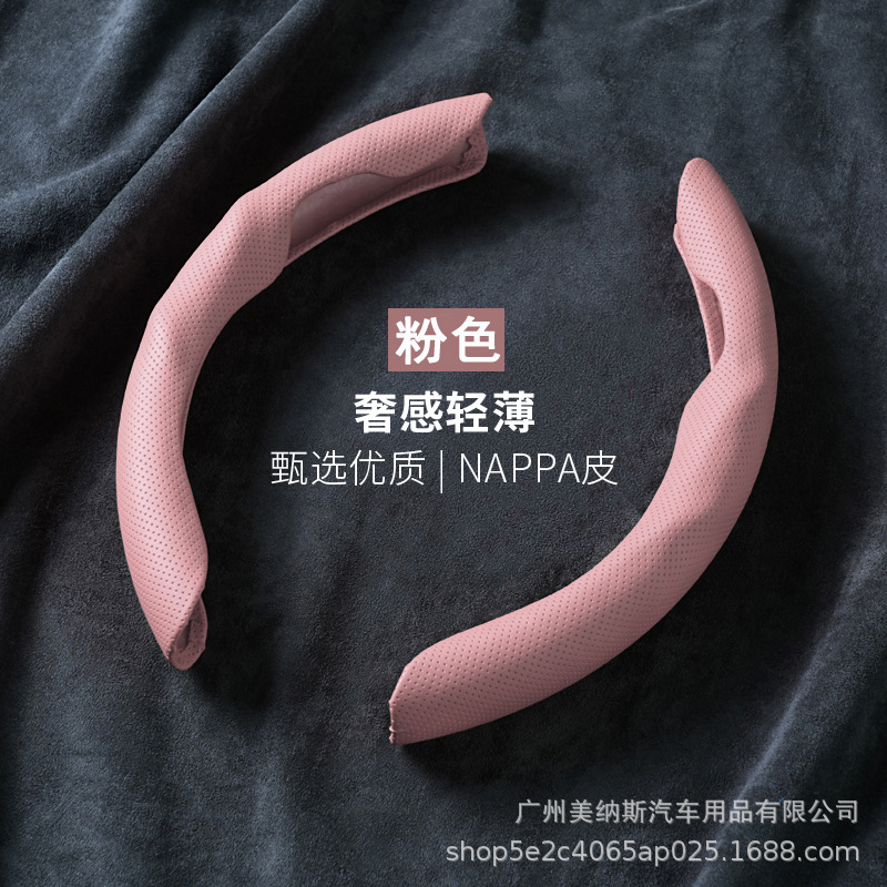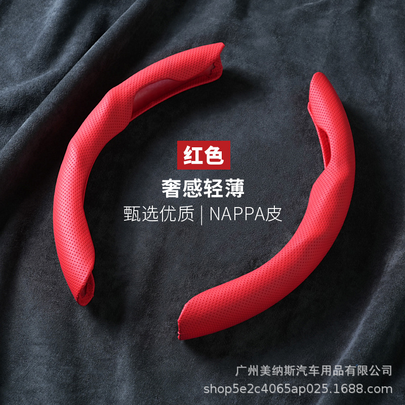 자동차 스티어링 휠 커버 라운드/D 자형 매우 얇은 통기성 내마모성 카세트 나파 가죽 핸들 커버 미끄럼 방지 스포츠 올 시즌 유니버설스토어 가기