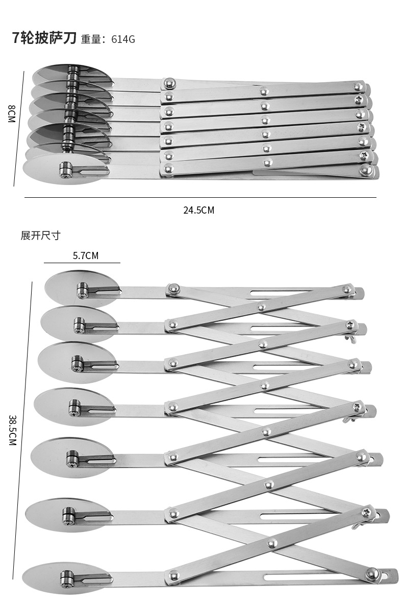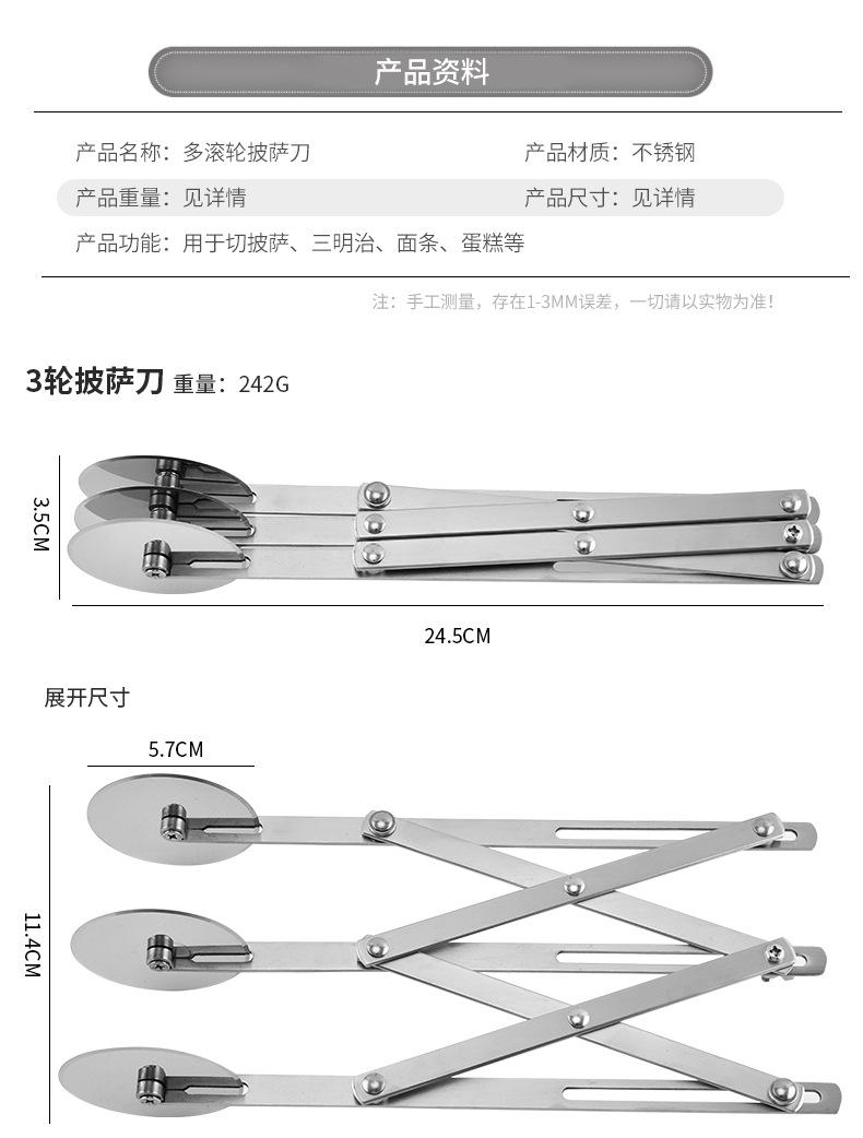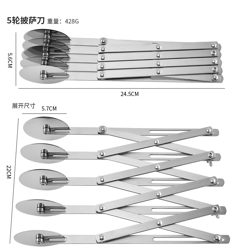 스테인레스 스틸 5 라운드 7 라운드 베이커리 롤러 누들 커터 개폐식 피자 휠 튀김 나이프 다기능 튀김
