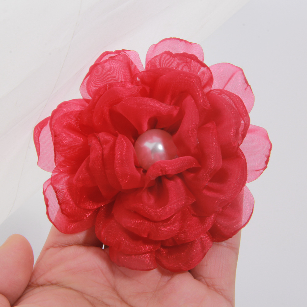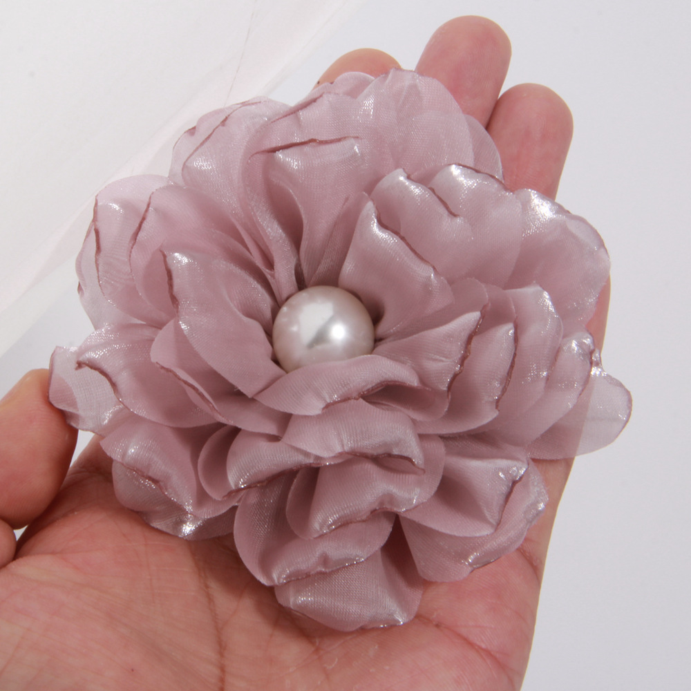 진주 천 꽃 천 꽃 거즈 의류 액세서리 브로치 의류 액세서리와 9cm 큰 재고스토어 가기