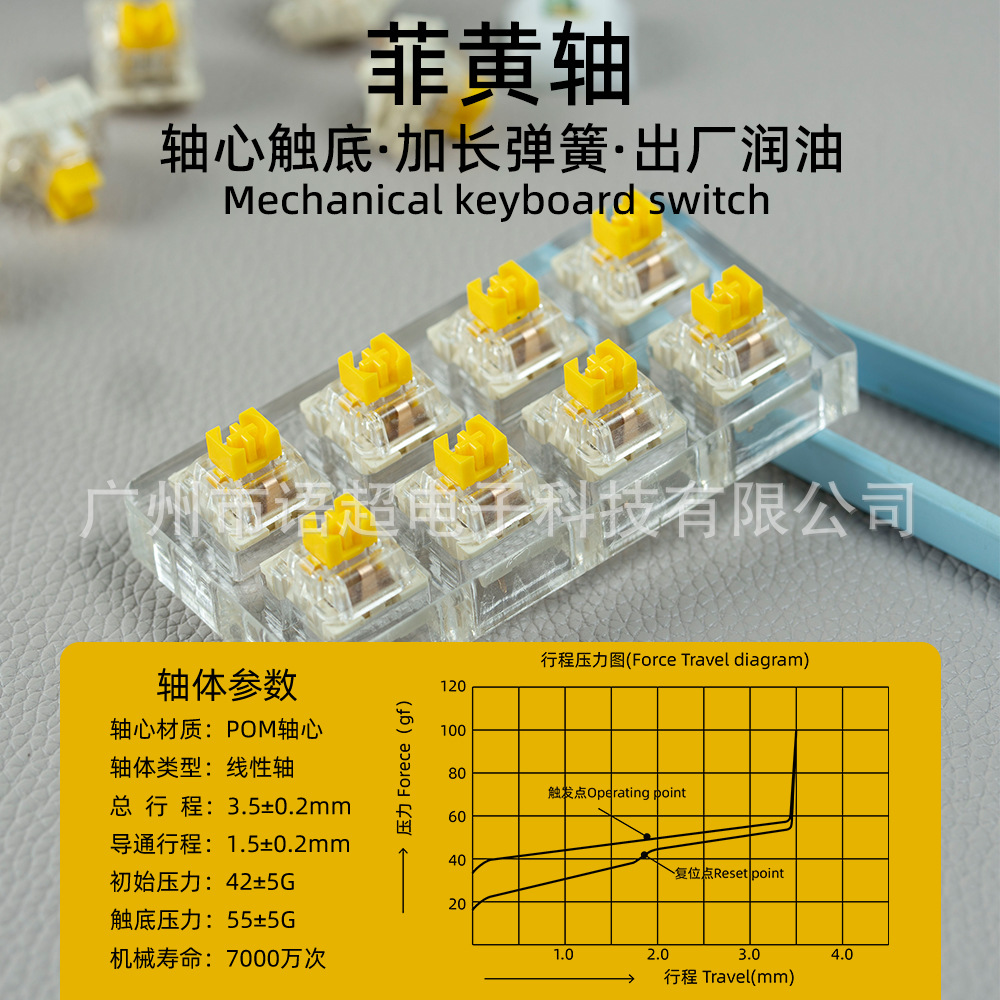 기계식 키보드 스위치 샤프트의 국경 간 공급 맞춤형 페이 옐로우 샤프트 V2 선형 지원 핫 스왑 가능 RGB
