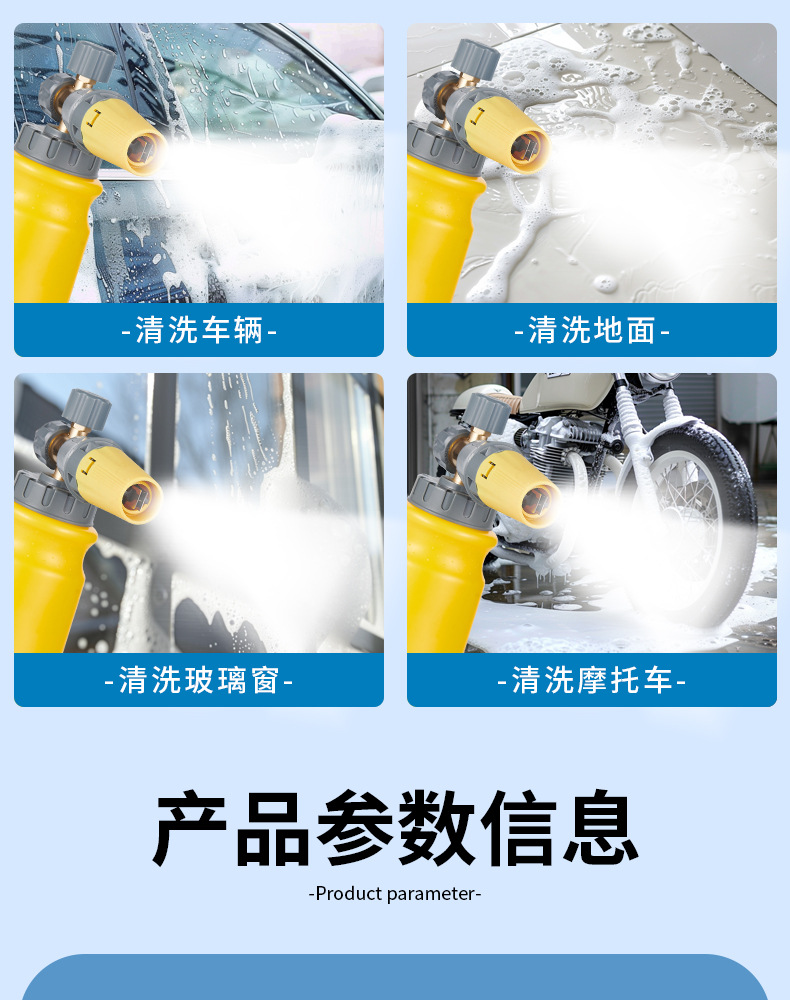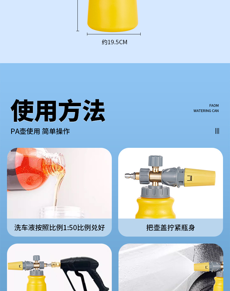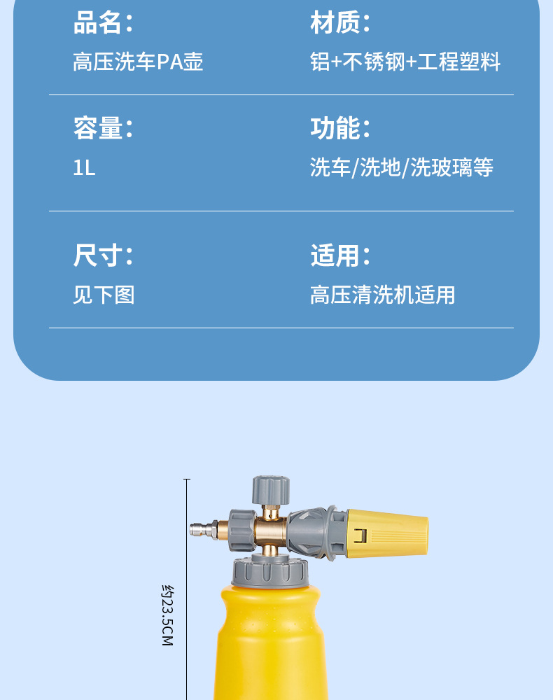 자동차 세척 거품 큰 노즐 급수 고압 자동차 세탁기 PA 거품 냄비 눈송이 Taizhou 물 총 팬 빠른 플러그 거품 펌프스토어 가기