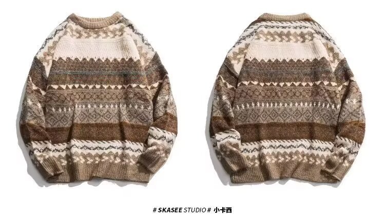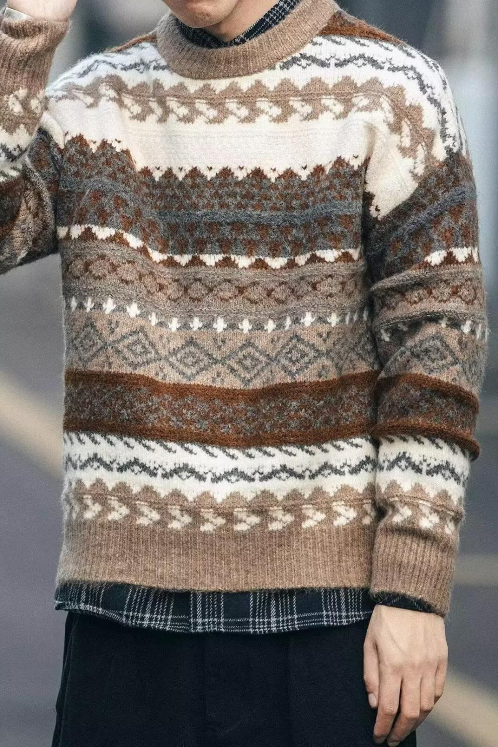 费尔岛提花圣诞毛衣男日系复古慵懒高级感古着内搭冬季针织衫