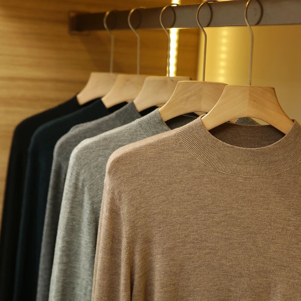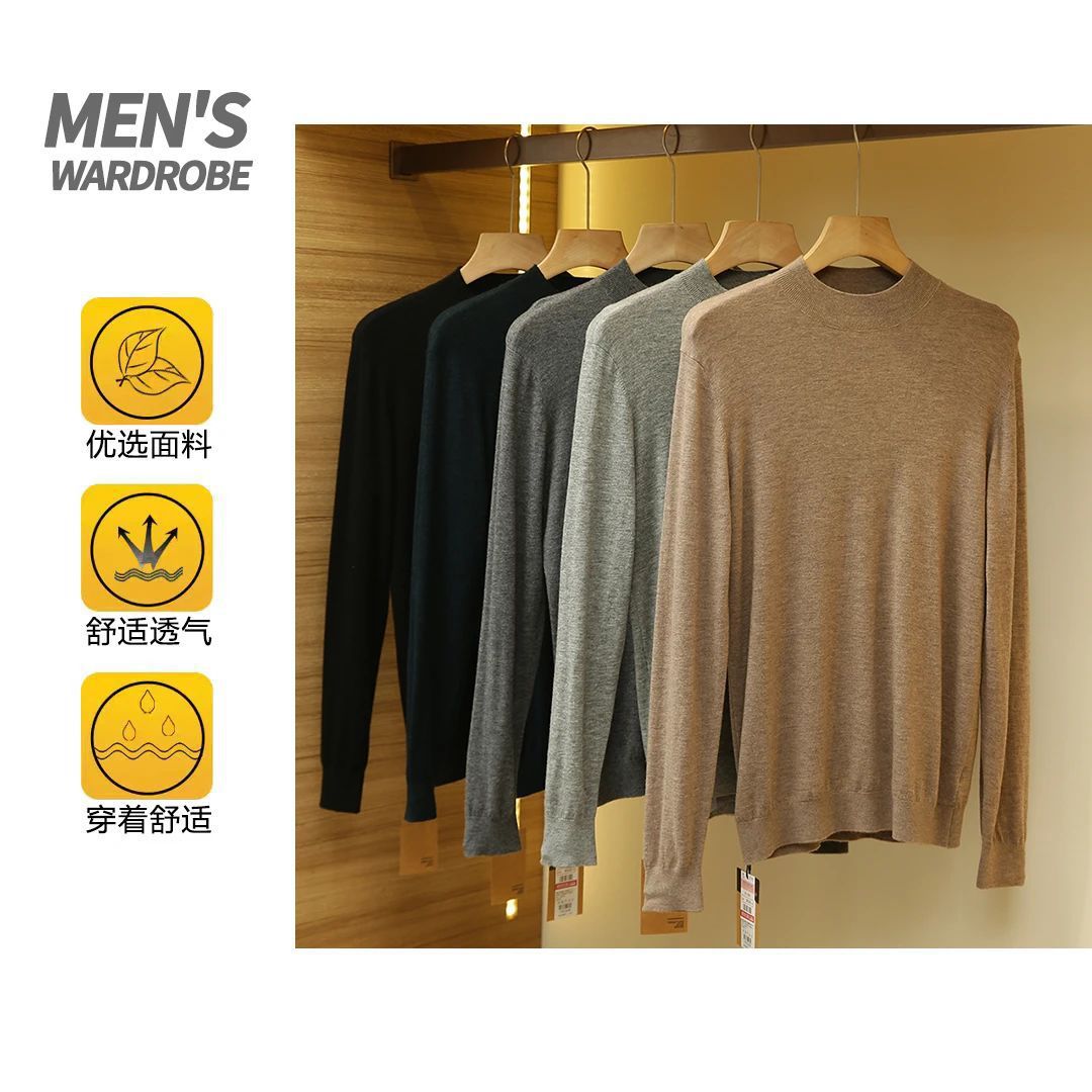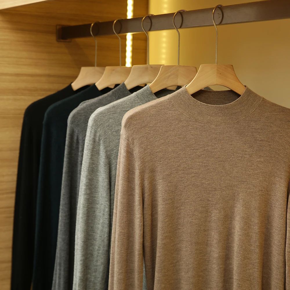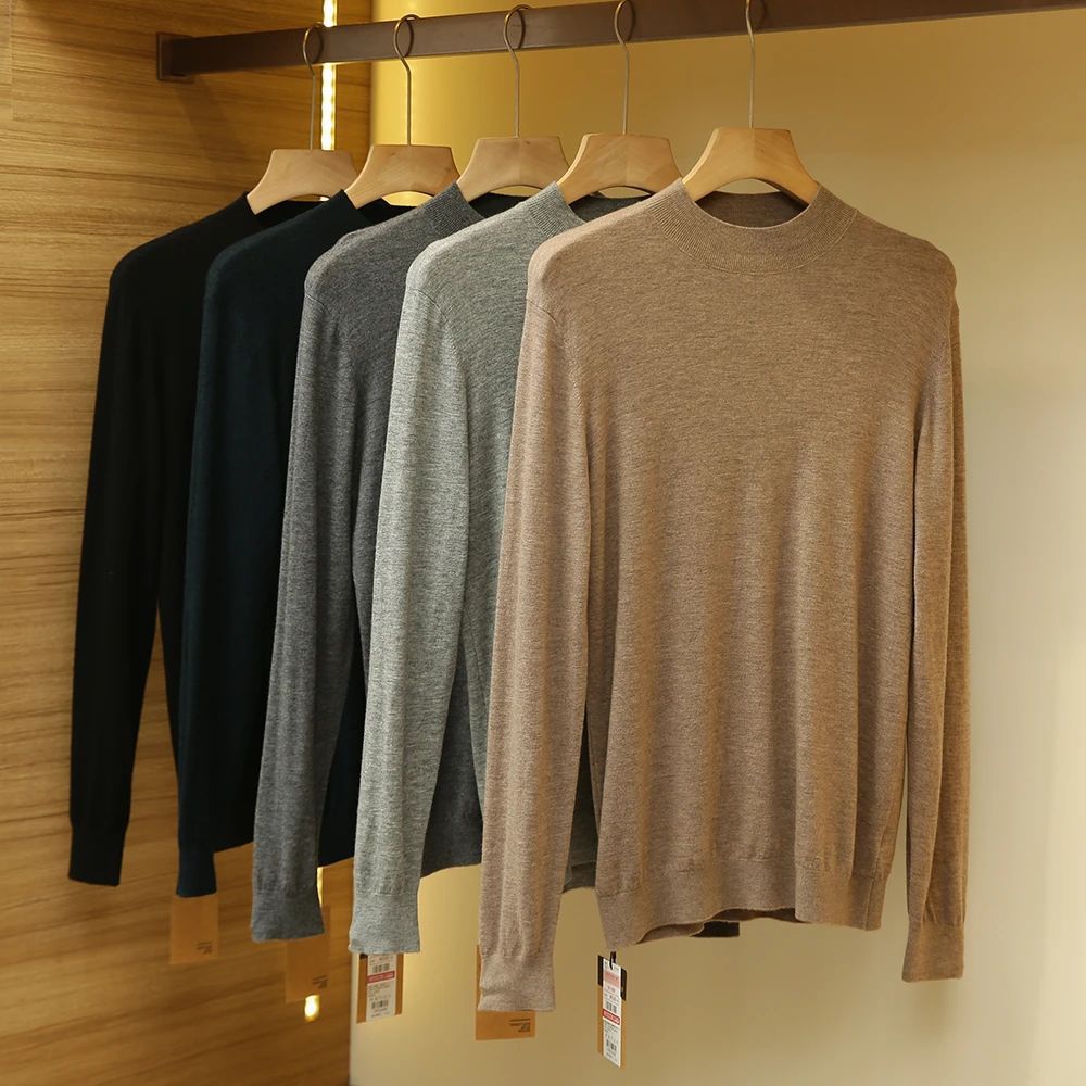 가을과 겨울 새로운 부드러운 따뜻한 초 미세 양 스웨터 남자 하프 터틀넥 스웨터 솔리드 컬러베이스 스웨터 남성복스토어 가기