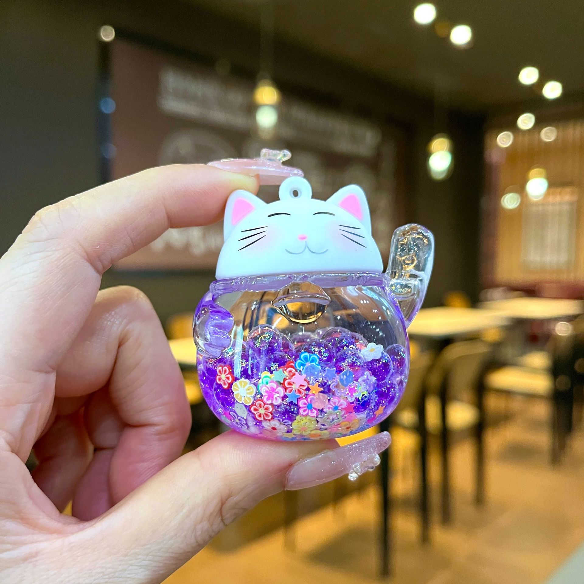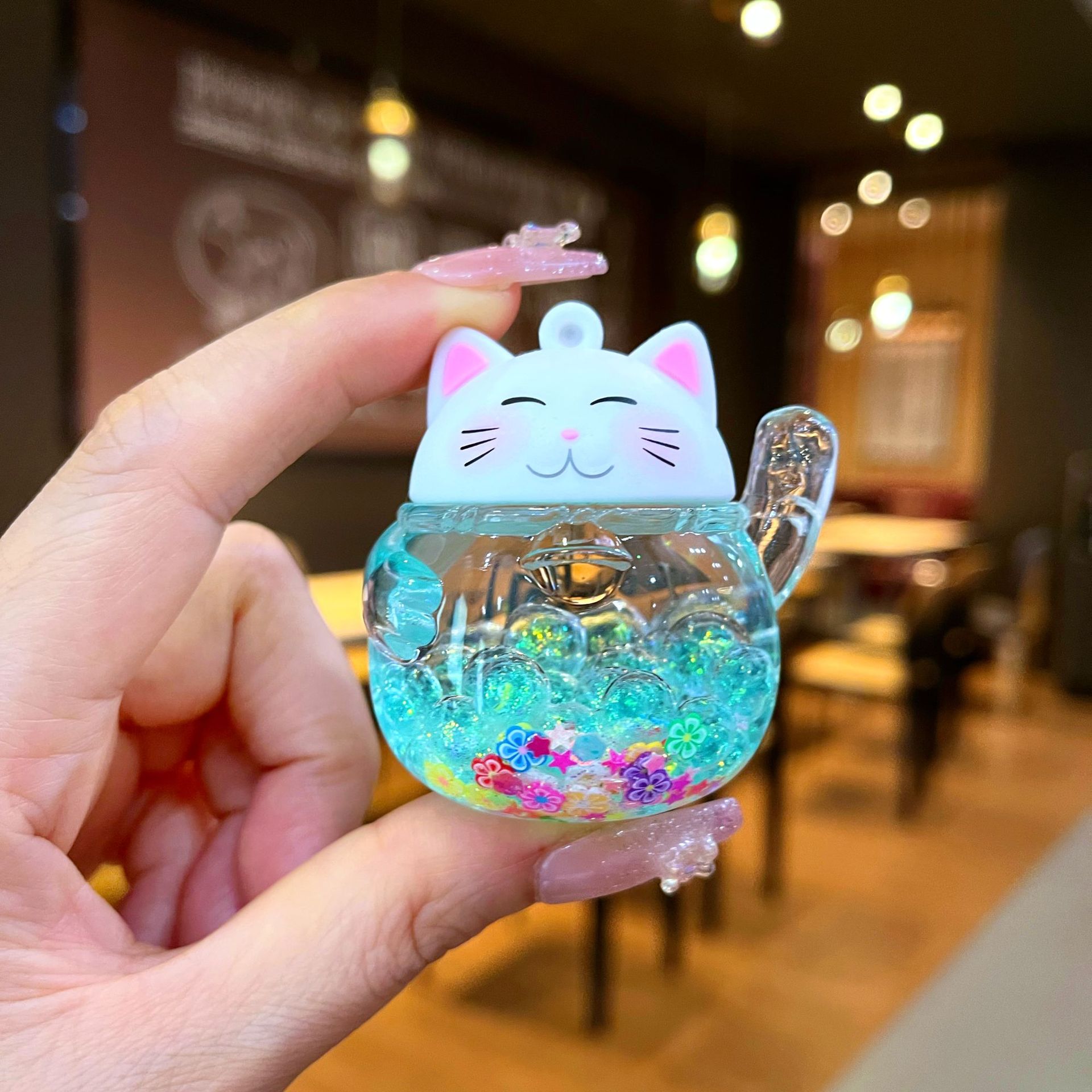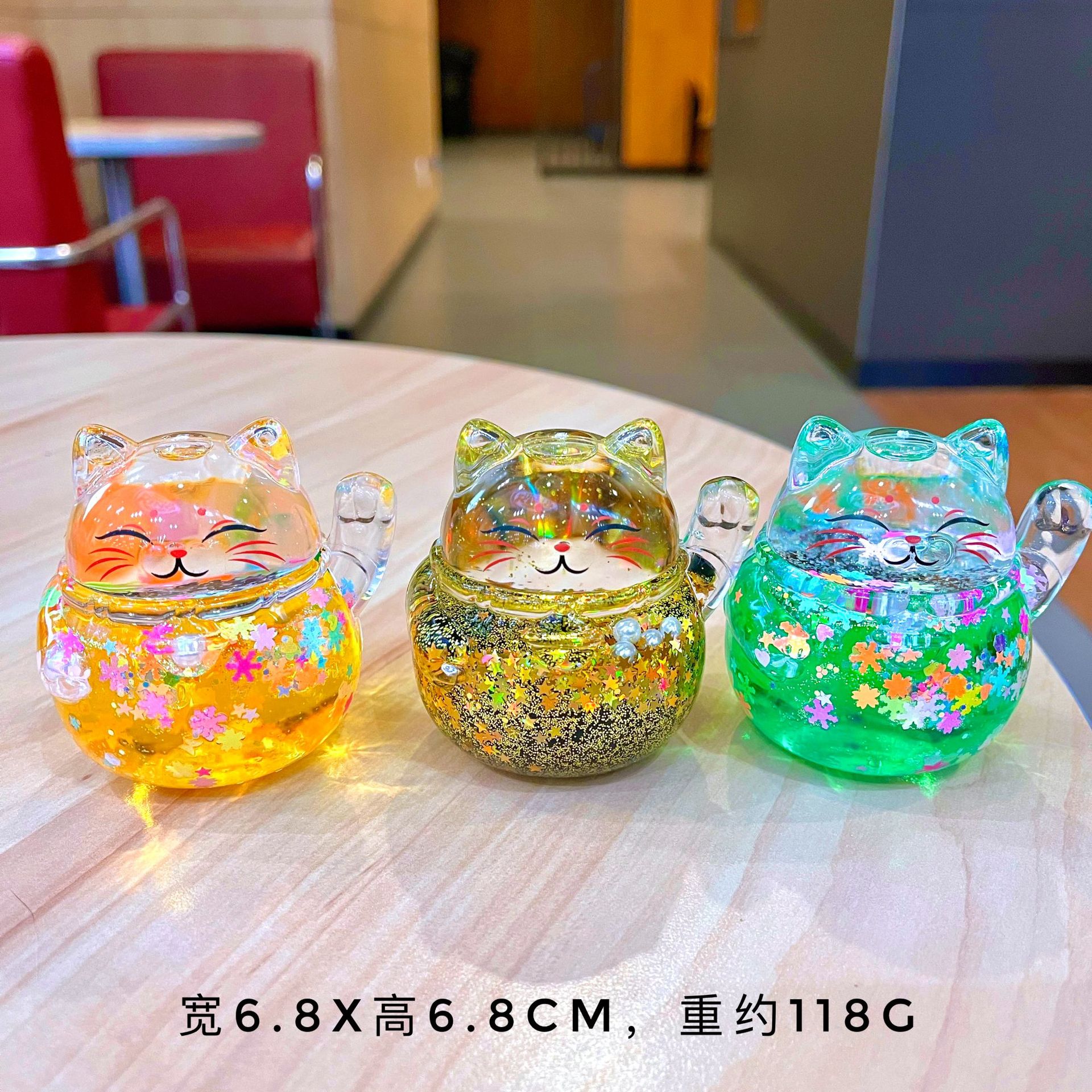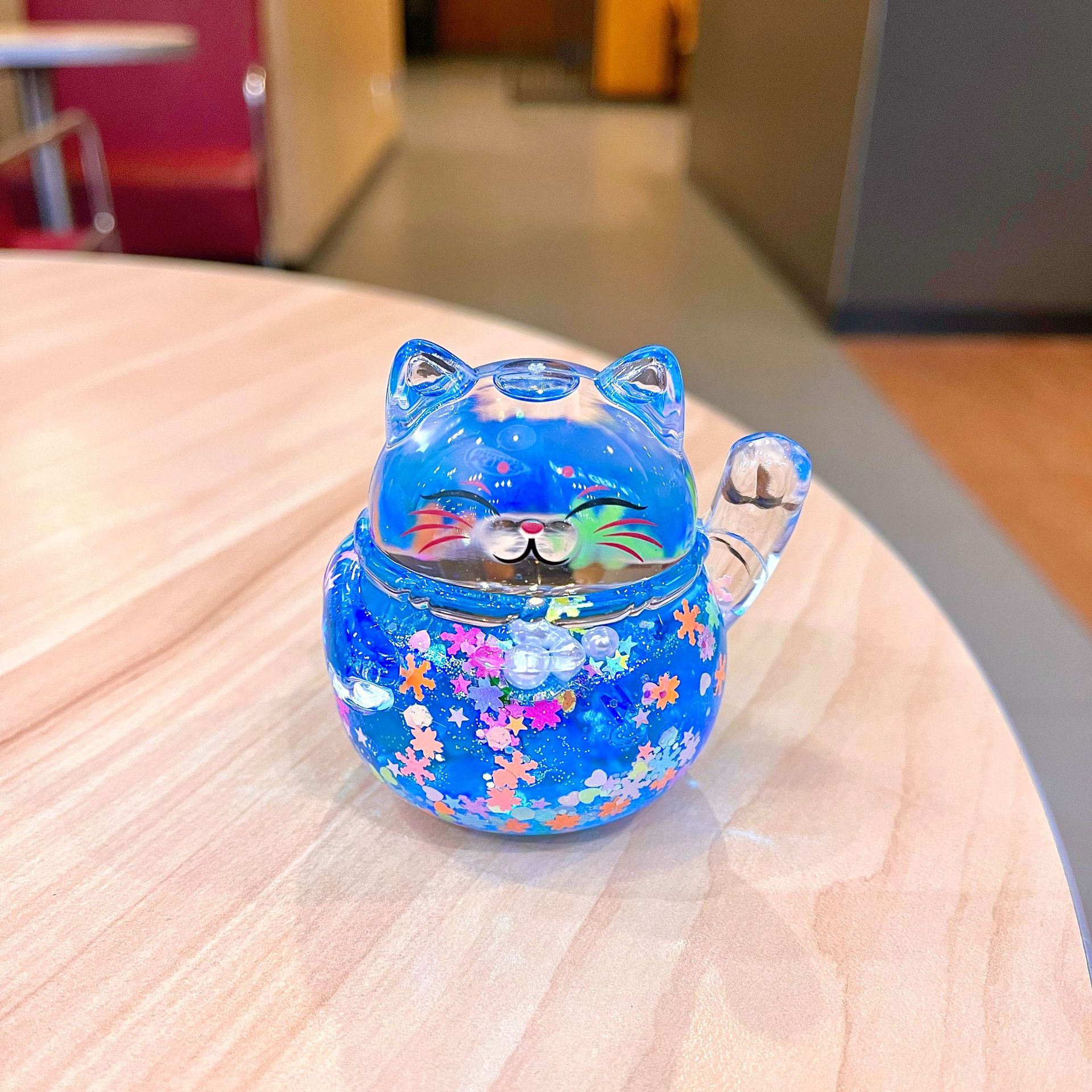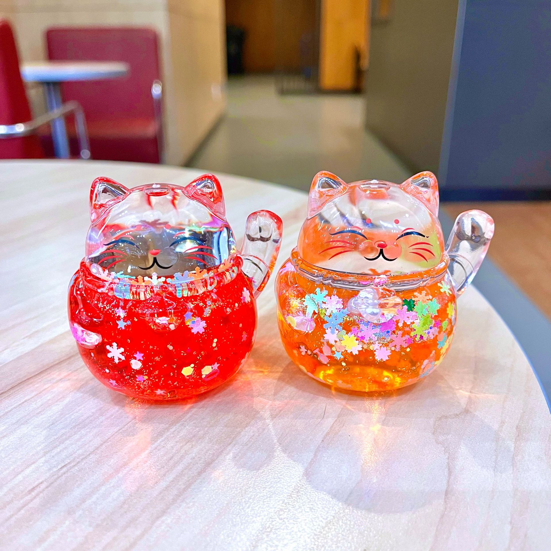 새해 폭발 Quicksand Oil Luckies 고양이 장식품 플래시 아크릴 퀵 샌드 병 키 체인 동요 톤 블라인드 박스 장난감스토어 가기