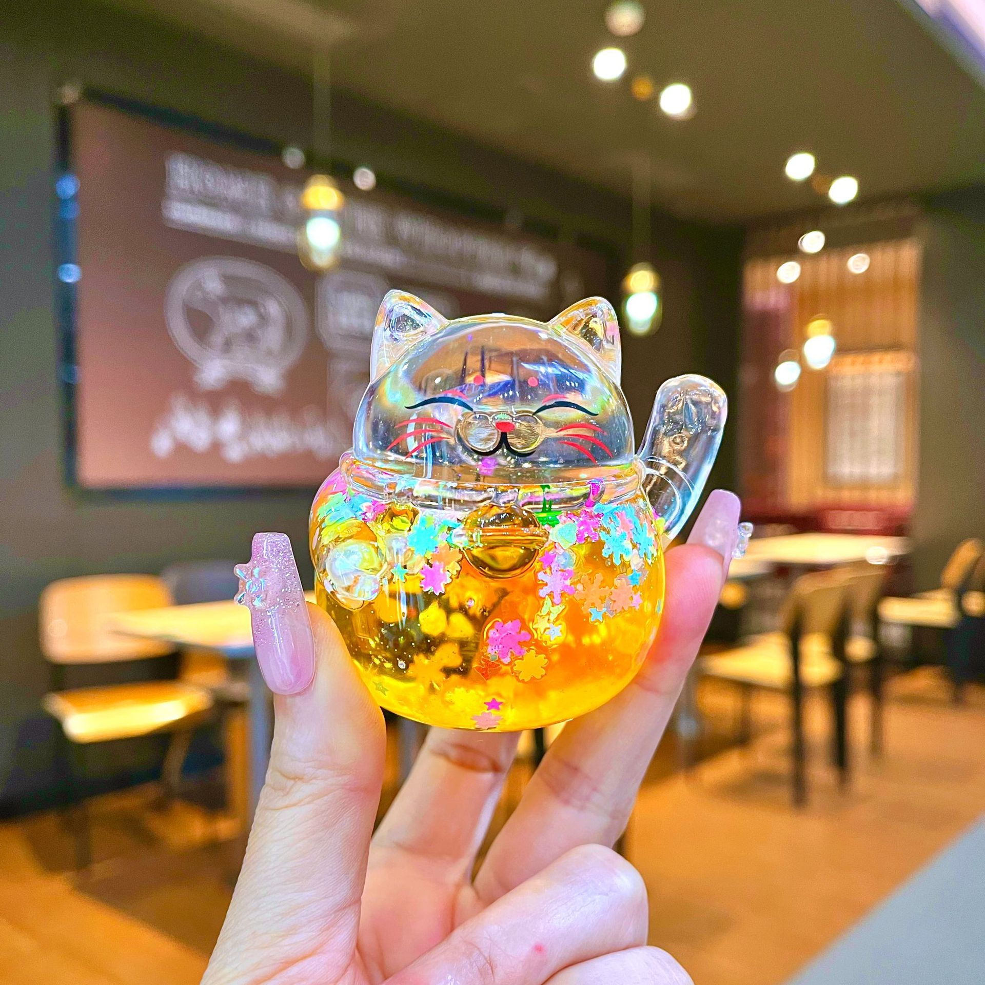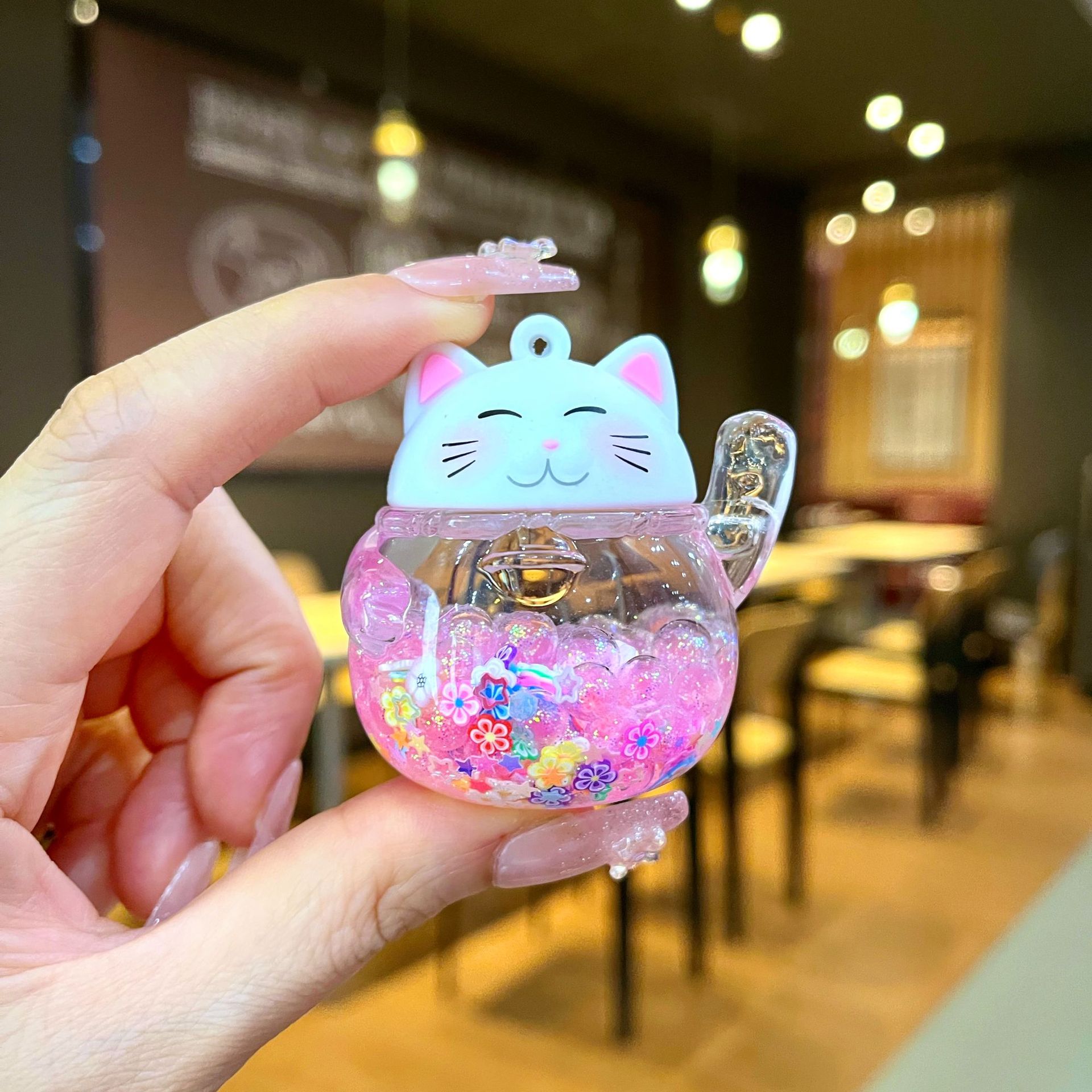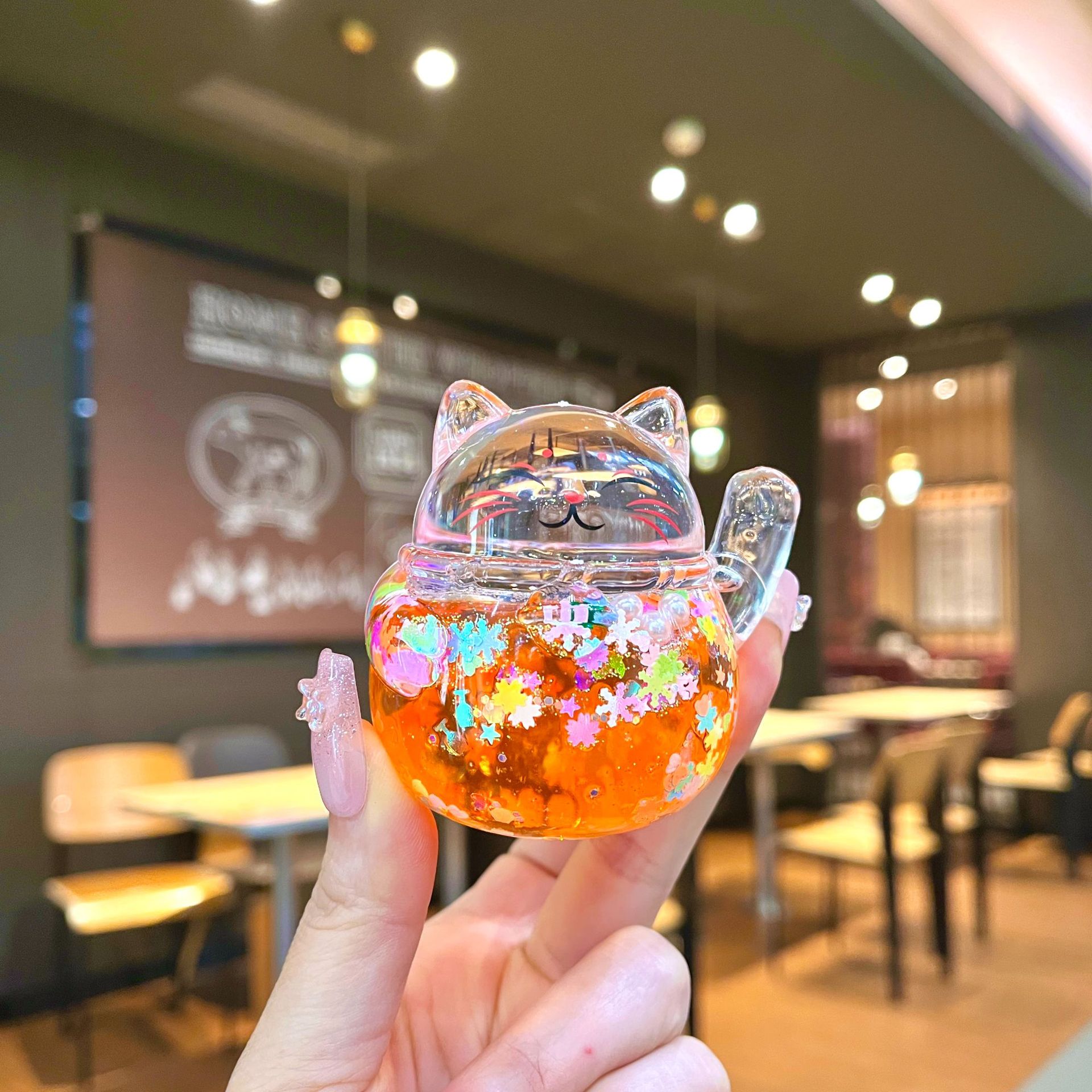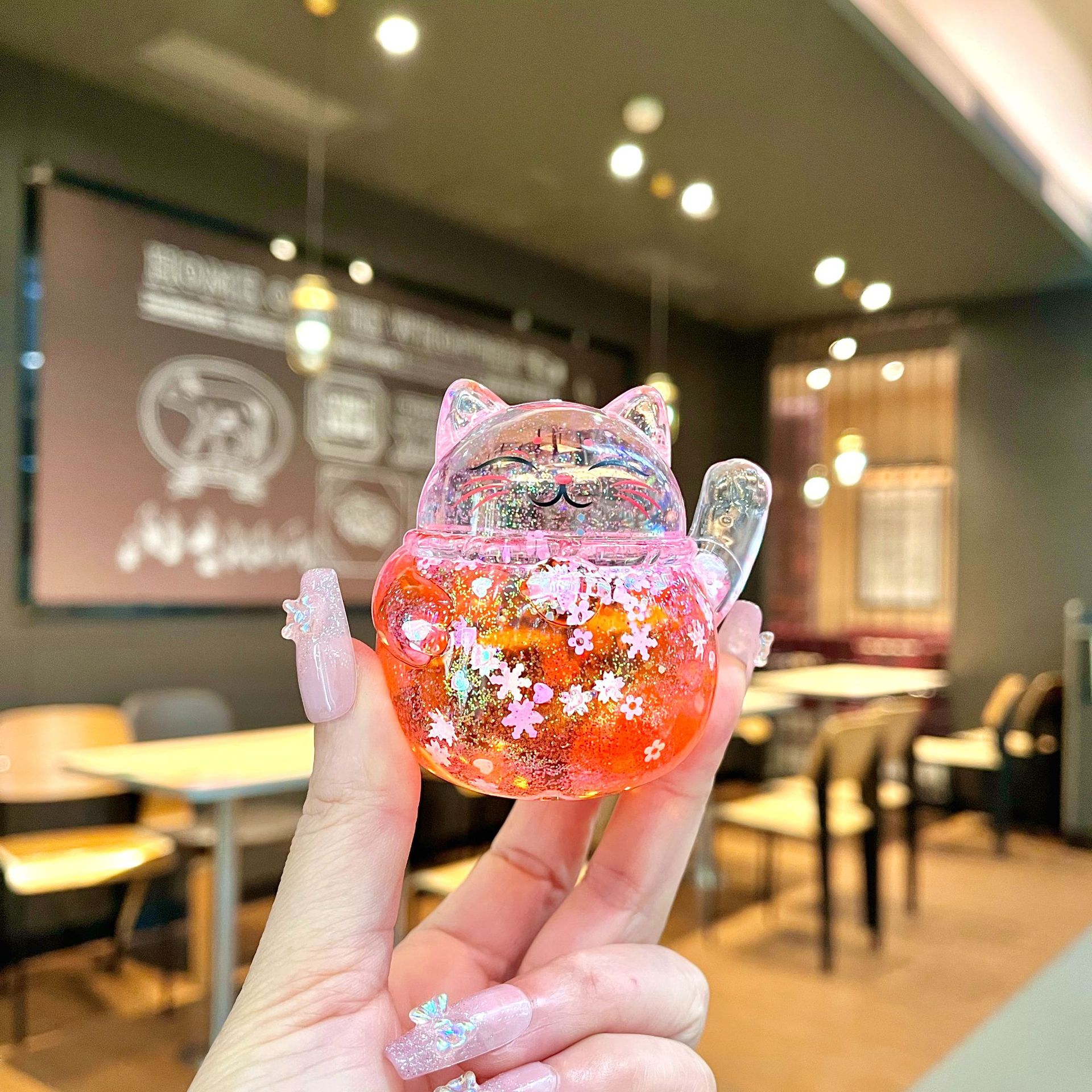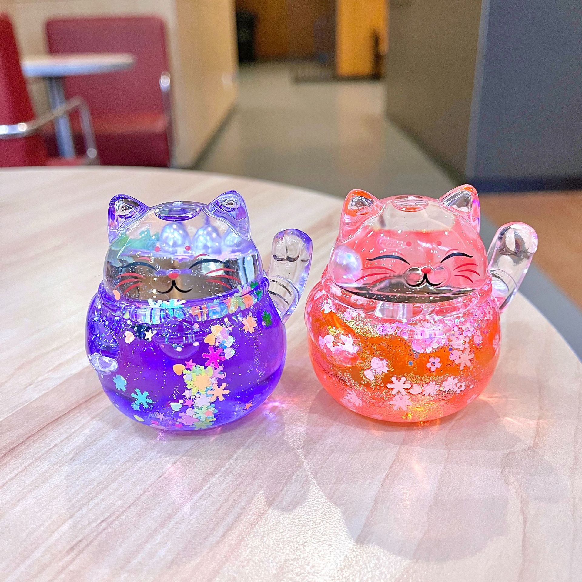 새해 폭발 Quicksand Oil Luckies 고양이 장식품 플래시 아크릴 퀵 샌드 병 키 체인 동요 톤 블라인드 박스 장난감스토어 가기