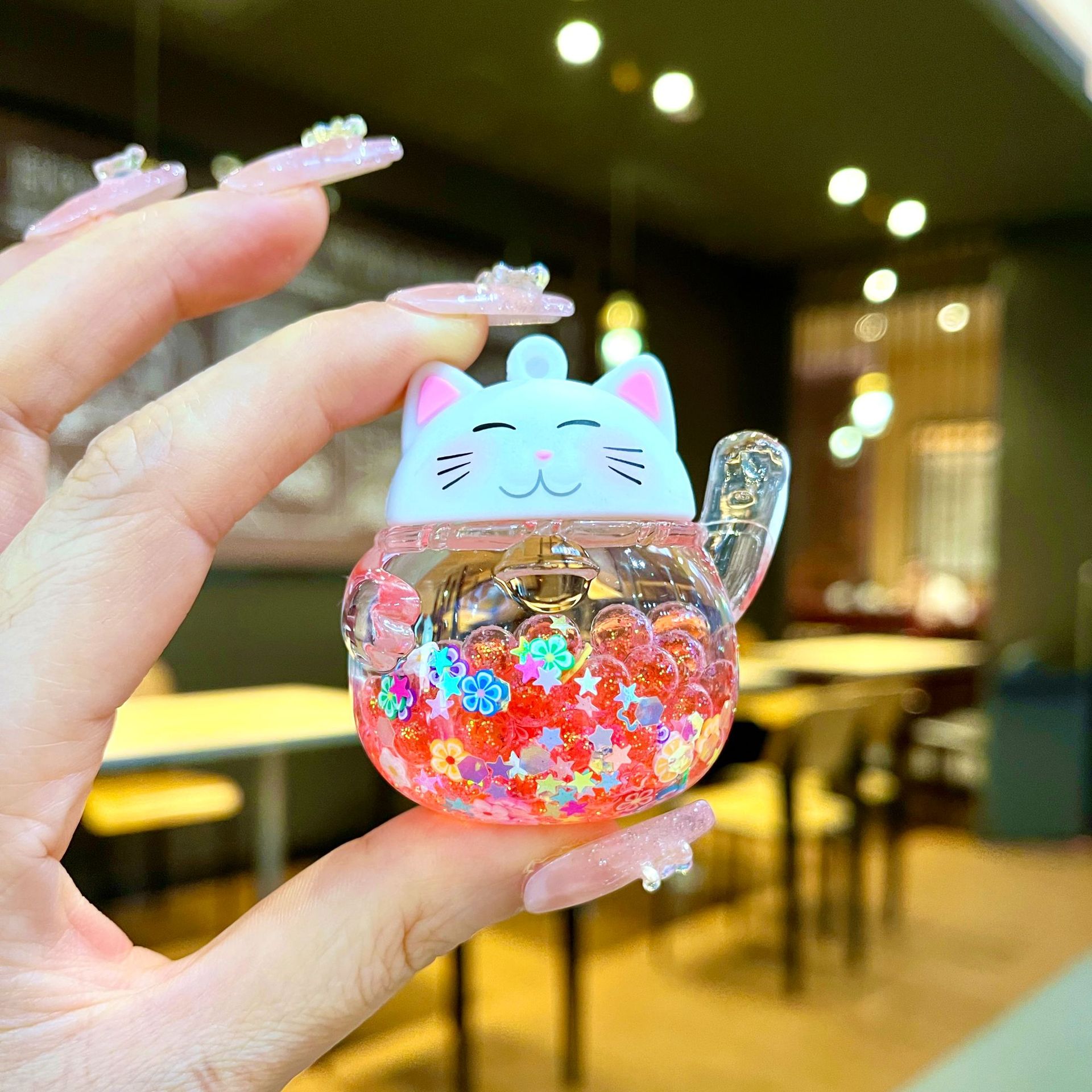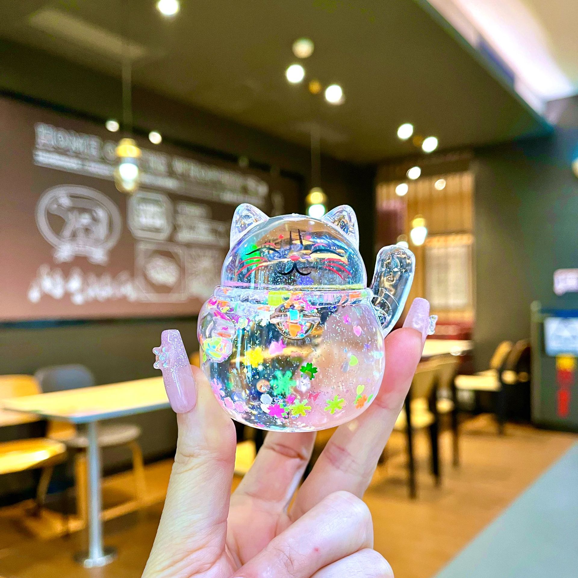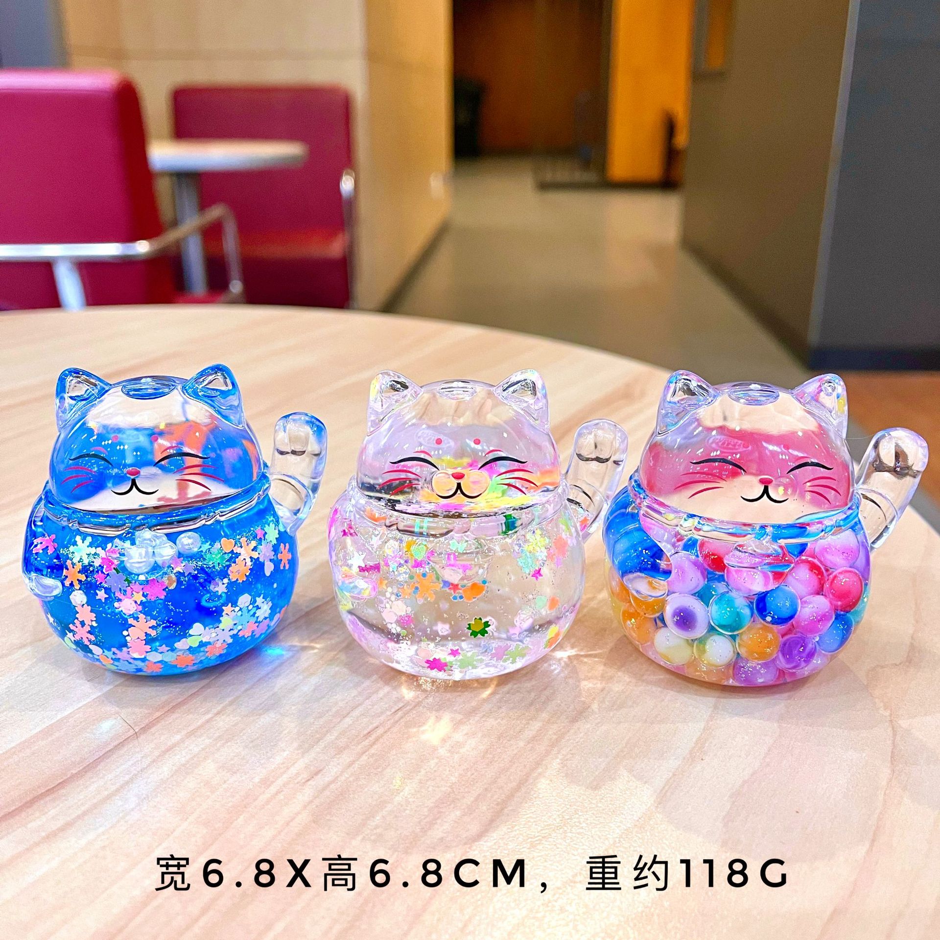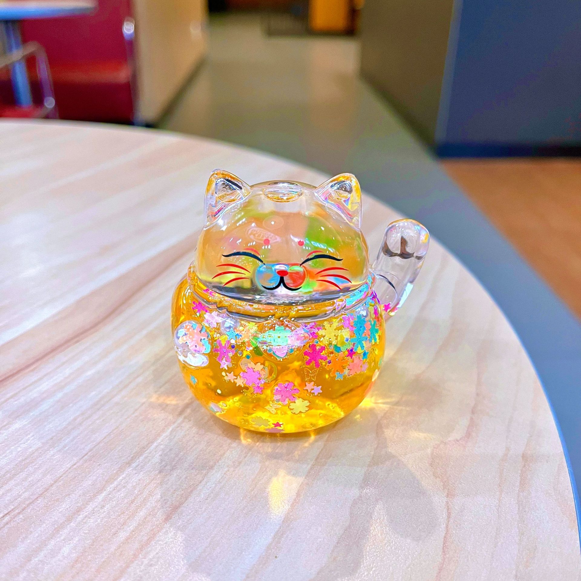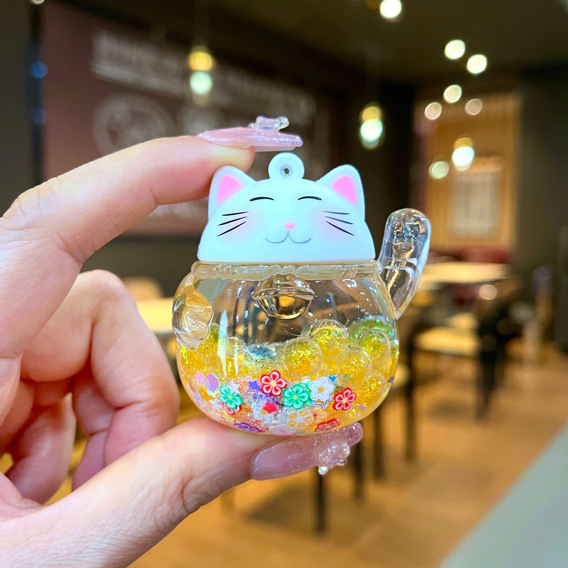 새해 폭발 Quicksand Oil Luckies 고양이 장식품 플래시 아크릴 퀵 샌드 병 키 체인 동요 톤 블라인드 박스 장난감스토어 가기