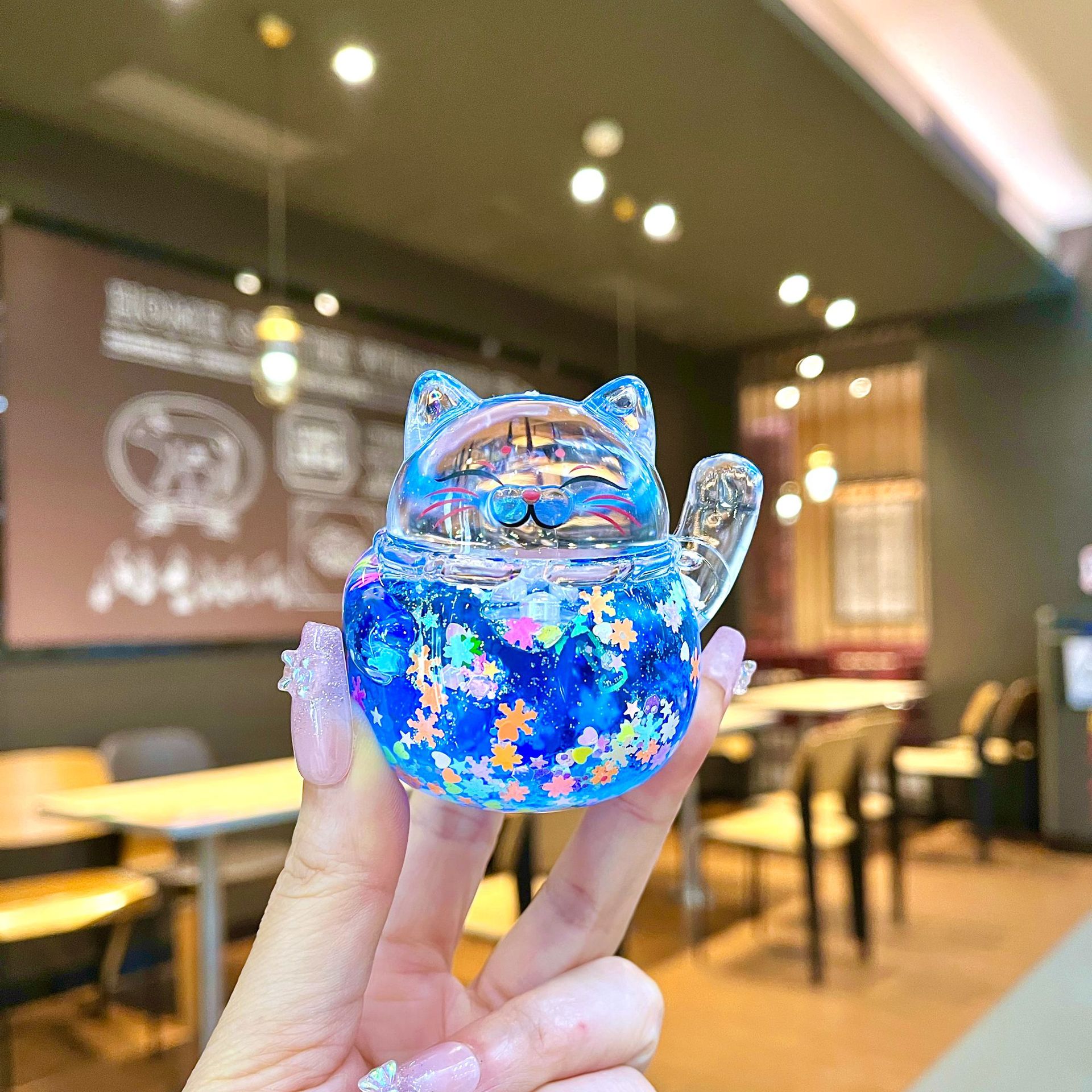 새해 폭발 Quicksand Oil Luckies 고양이 장식품 플래시 아크릴 퀵 샌드 병 키 체인 동요 톤 블라인드 박스 장난감