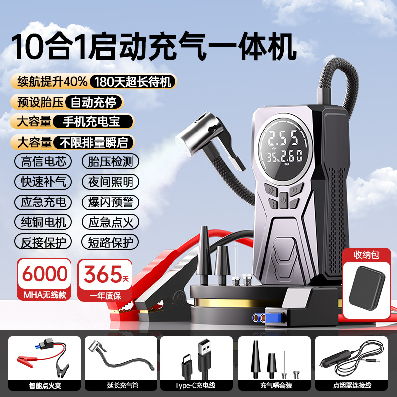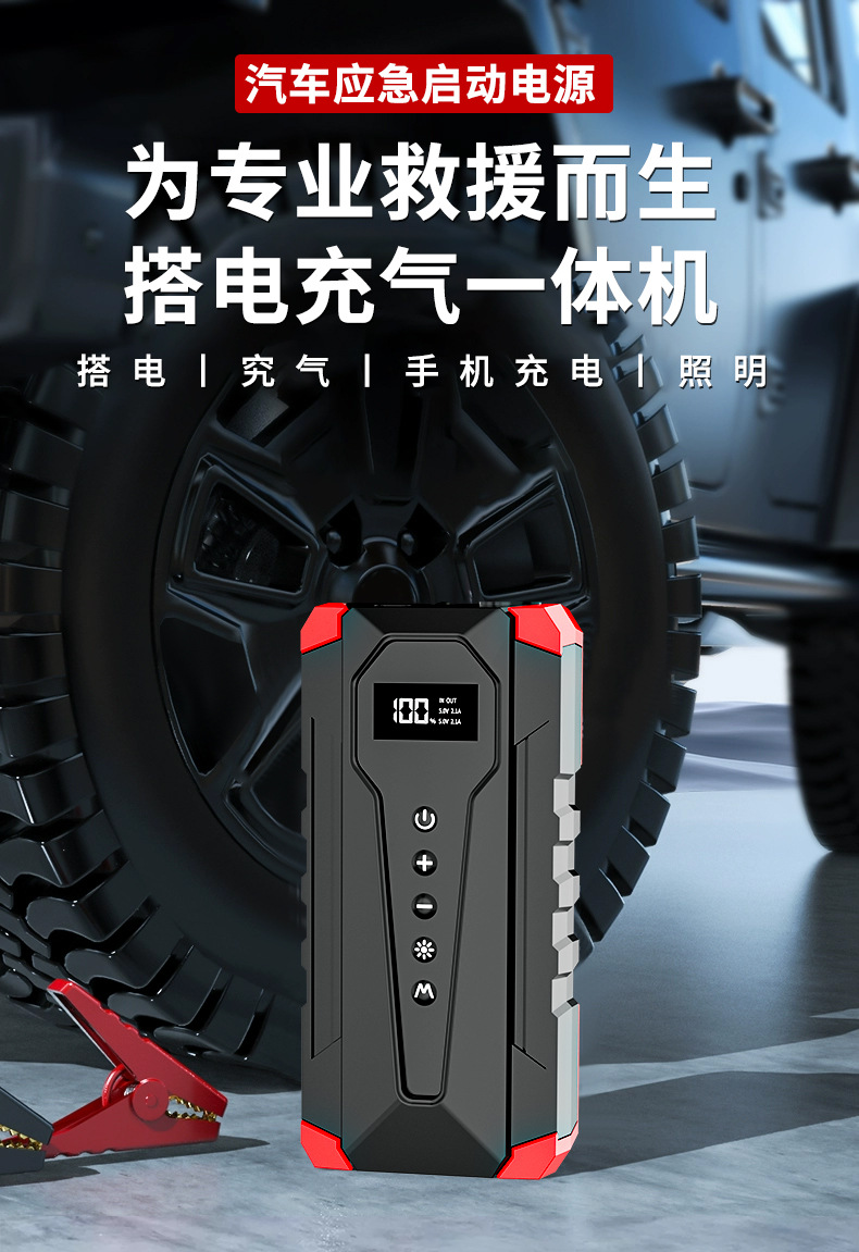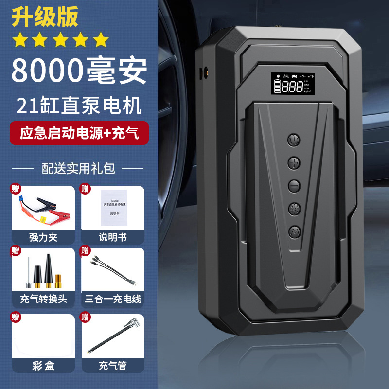 공장 직접 자동차 비상 시작 전원 공급 장치, 공기 펌프 올인원 기계, 대용량 12V 배터리 비상 전원 공급 장치