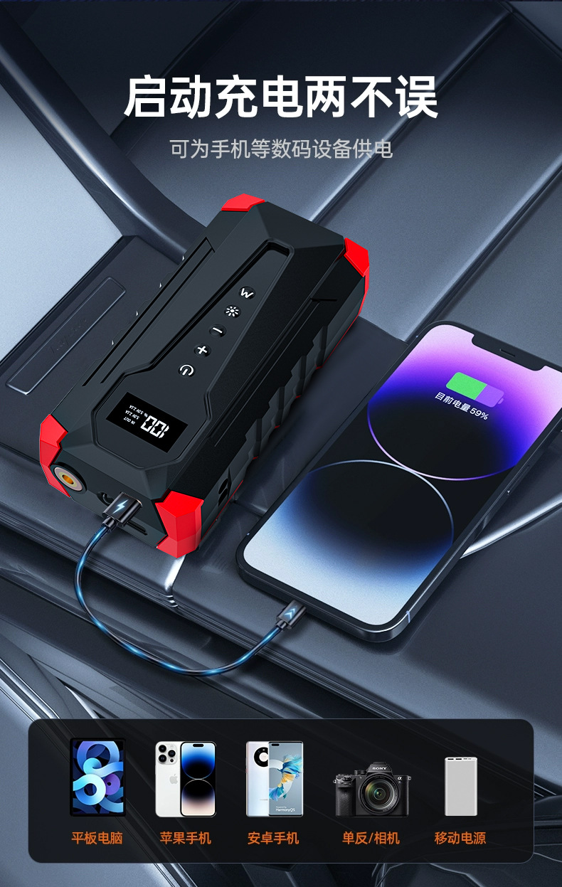 • [프라이빗 모델] 표준 모델 + 6000mAh + 천 가방 + 컬러 박스 + 비상 시동 전원 공급 장치 + 비상 조명 + 강력한 클립 + 블랙