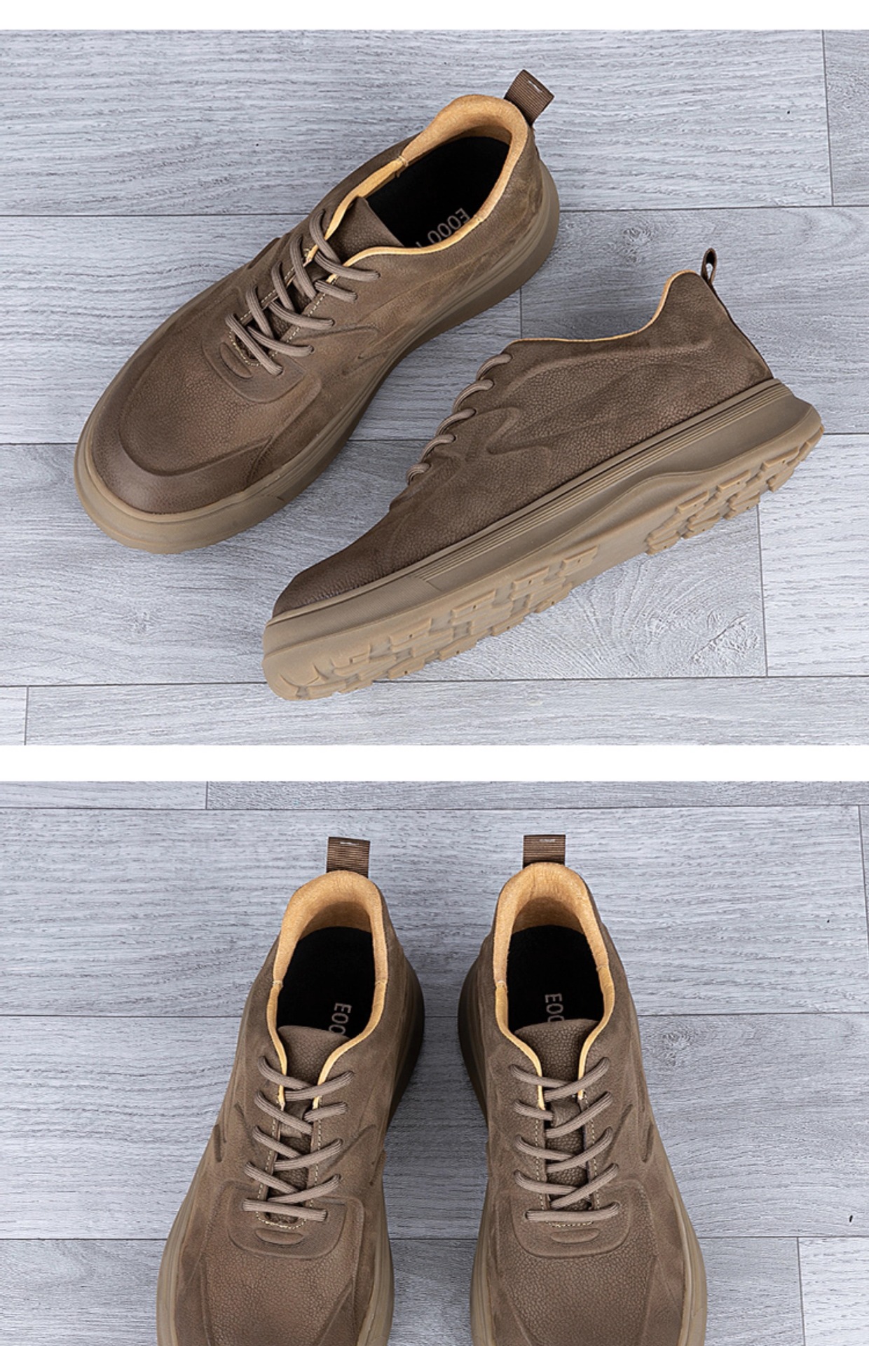 정품 가죽 남성 신발 탑 레이어 Cowhide 가을과 겨울 새로운 소프트 솔 부드러운 표면 편안한 복고풍 트렌드 두꺼운 단독 스포츠 캐주얼 가죽 신발