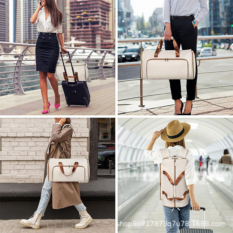 ✅【4 种携带方式】配有舒适的提手、可拆卸肩带、隐藏式加垫背包带和行李箱套,服装袋可同时用作随身旅行行李袋、单肩包、背包、行李箱上的行李袋时间。 4种携带方式可轻松转换,完美满足您在不同情况下的不同需求。